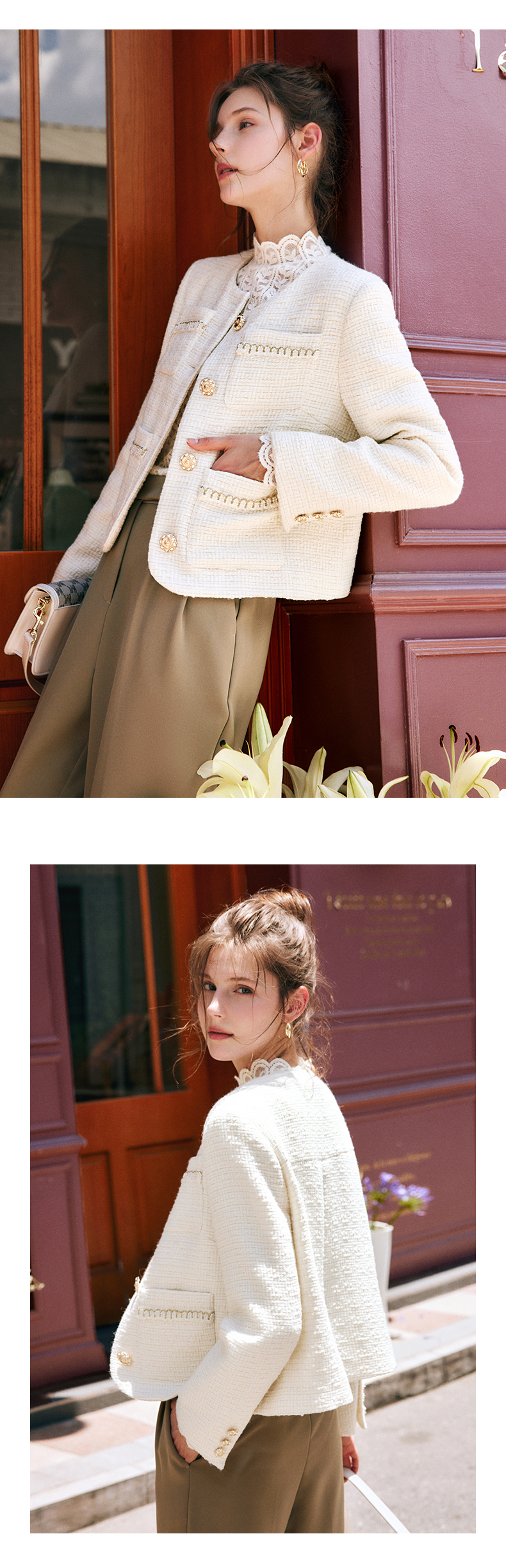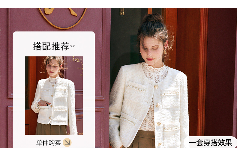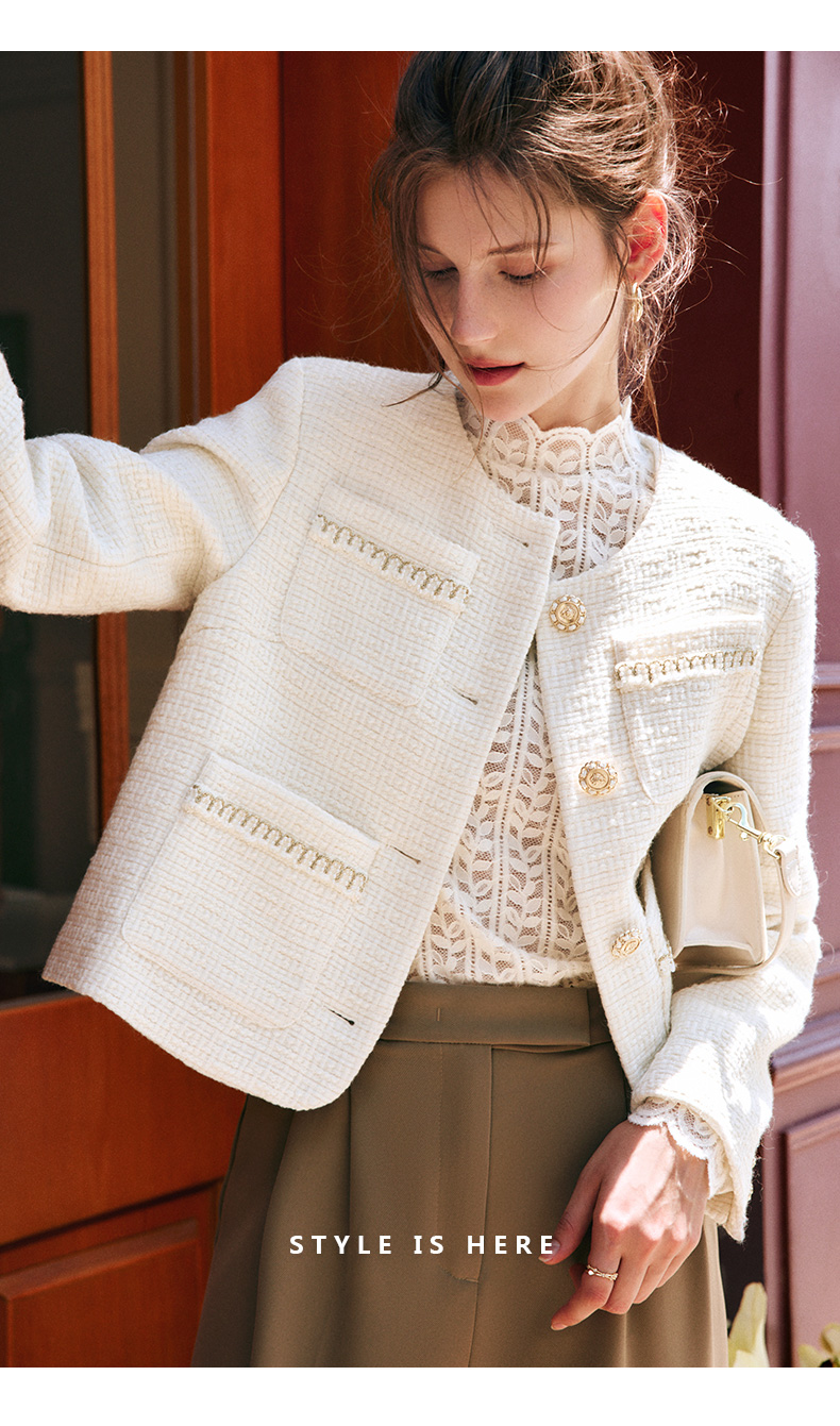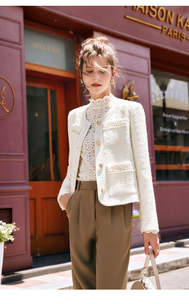 OLrain欧芮儿法式小香风短外套女秋季2022新款宽松气质粗花呢上衣