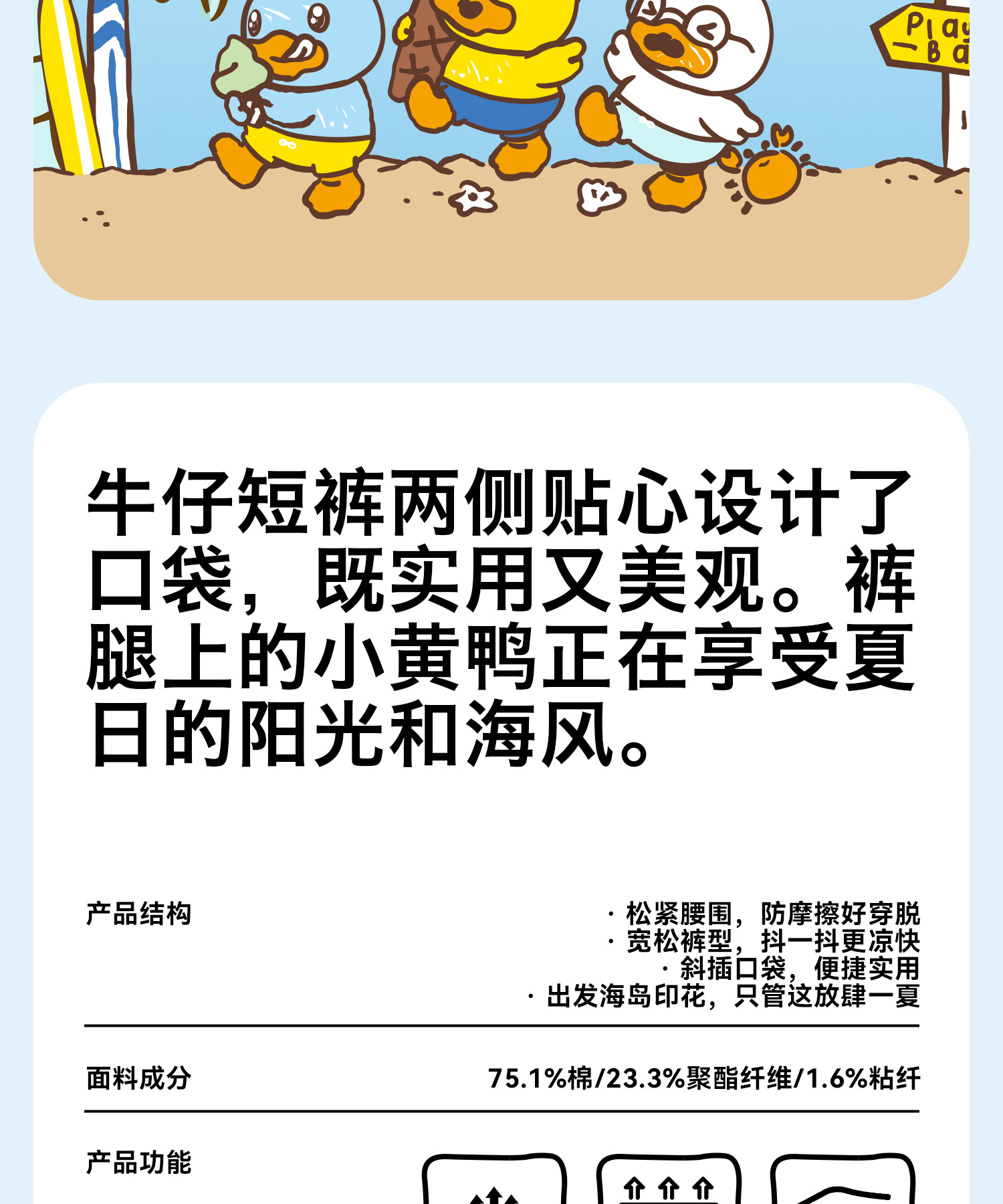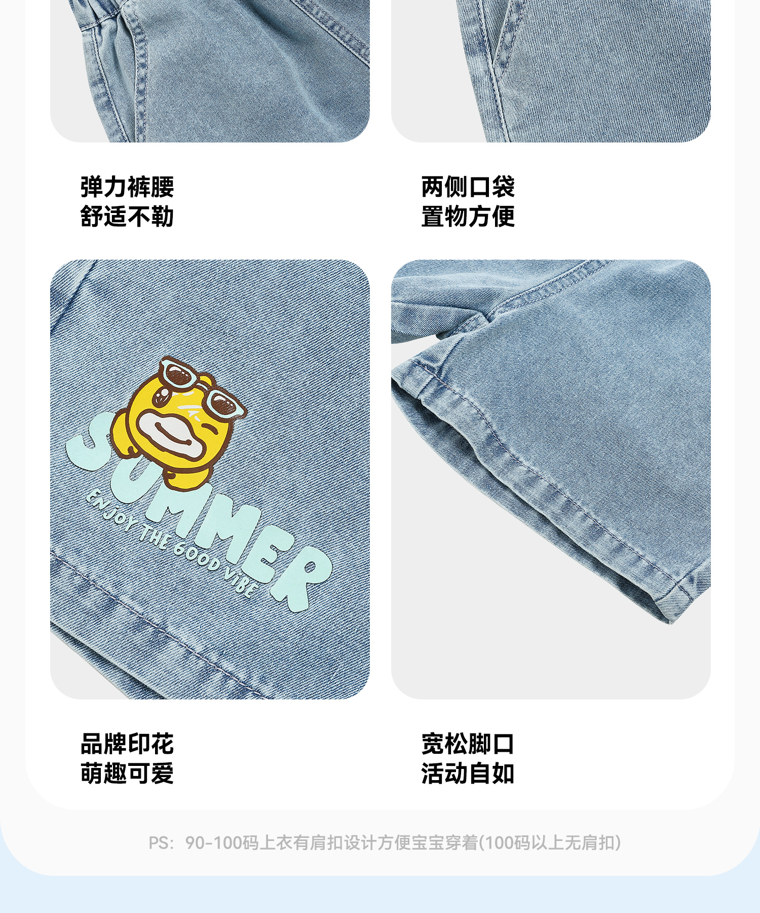 bduck小黄鸭童装夏季男童短裤儿童牛仔裤夏季裤子休闲五分裤105-140 BF2659007