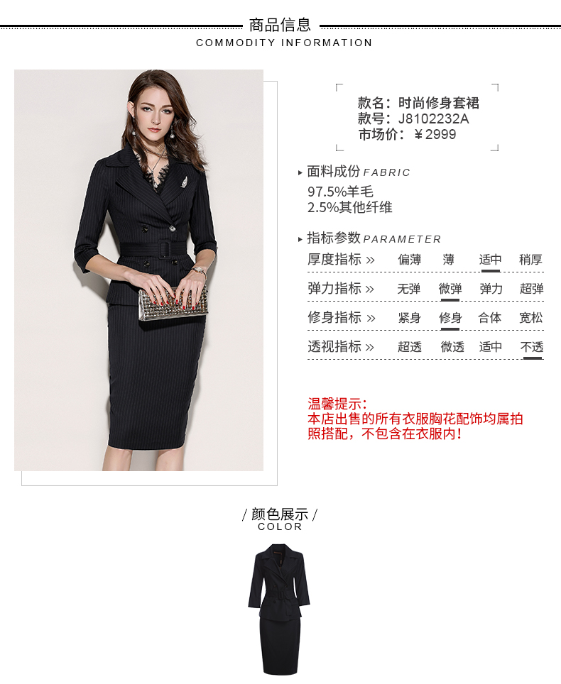 我们的产品:全网最具“质价比”的精英女装,只为有场合的“三高”女性打造,高知,高姿,高资。