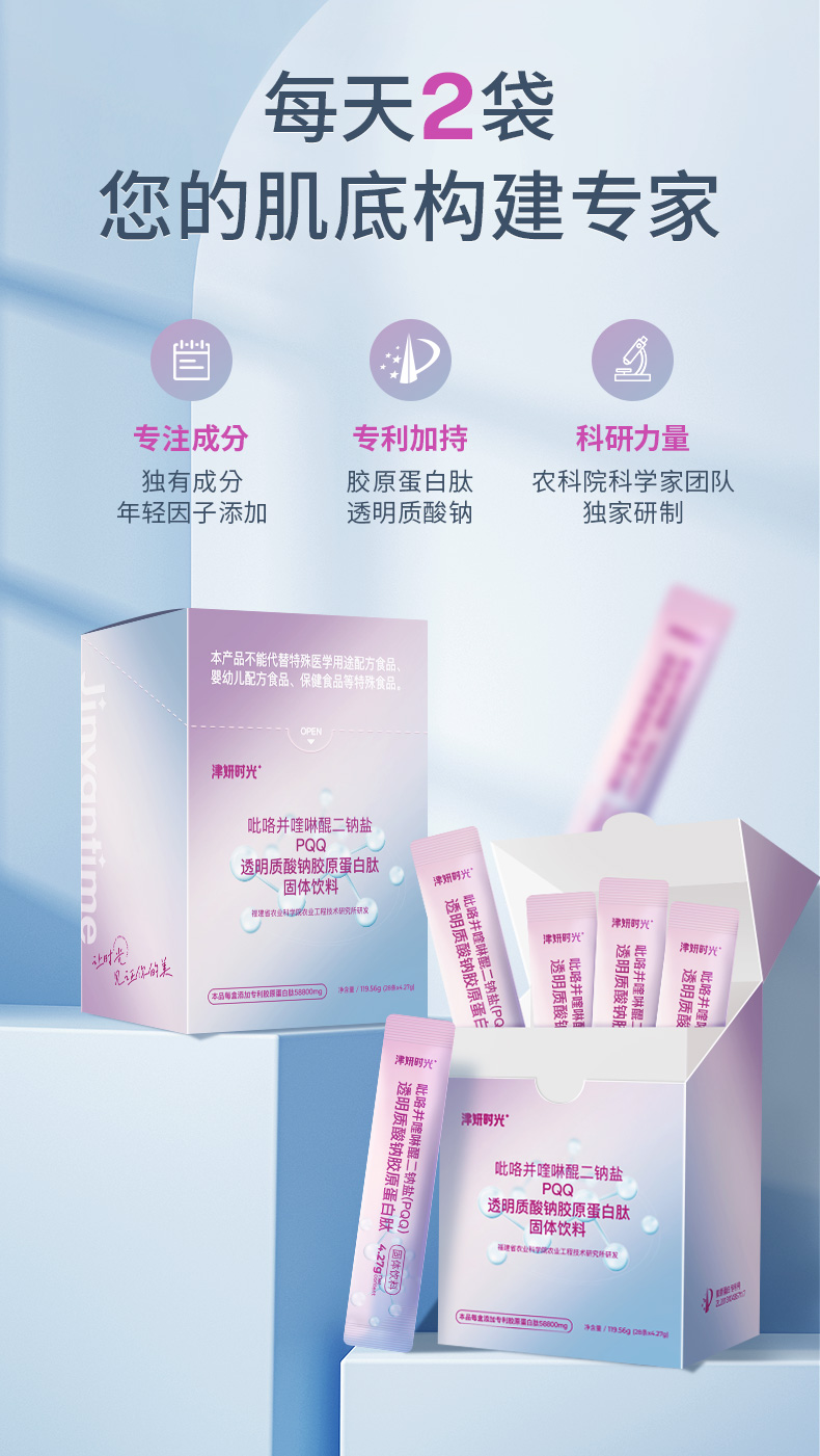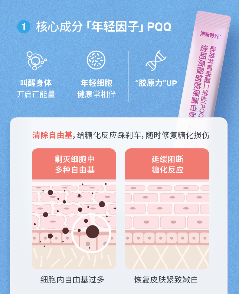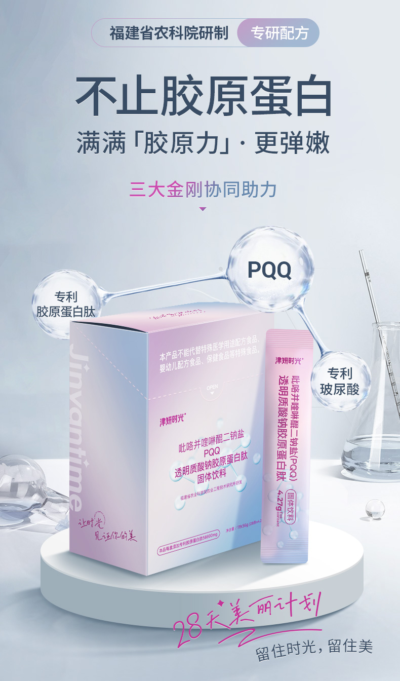 【PQQ胶原蛋白肽】福建省农科院专研配方!特添加年轻因子PQQ+小分子专利鱼胶原蛋白肽+专利玻尿酸!三大成分强强联合,360度激活细胞,直达肌底,保持年轻态!【科研系列】【QJ-J仓】