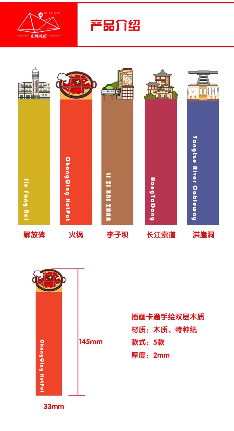 山城礼好重庆创意书签 文艺复古 纸质旅行阅读标签