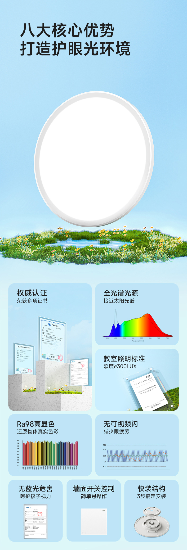 爆款🔥欧普(OPPLE)全光谱护眼吸顶灯光I侧发光6重防眩光学客厅灯智能LED照明灯具