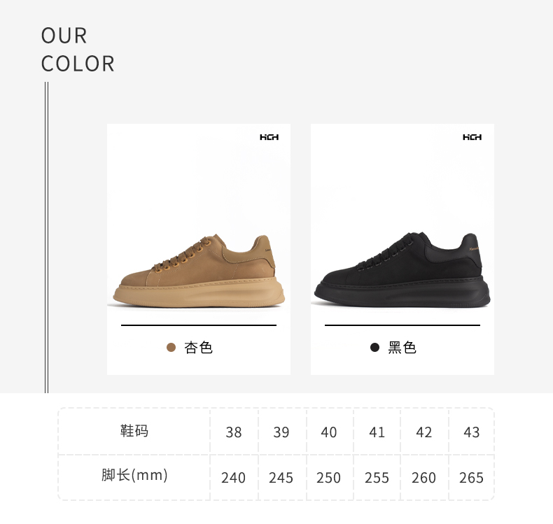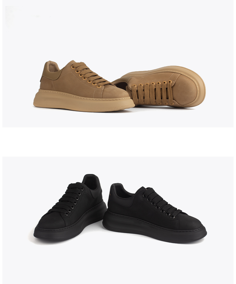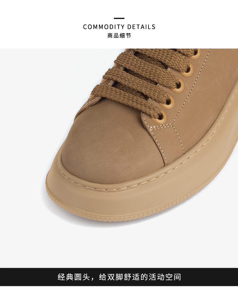 和诚行 2024秋冬新款厚底系带休闲板鞋男鞋真皮百搭滑板鞋0551160