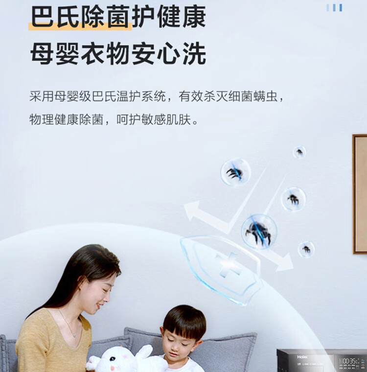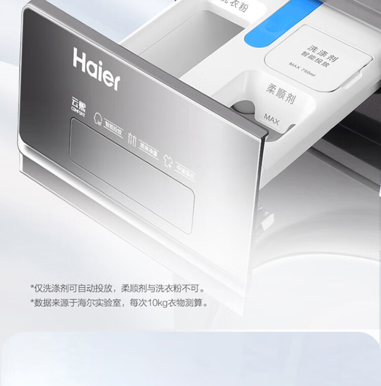 海尔(Haier)【1.1高洗净比】10KG滚筒洗衣机全自动变频超薄机身家用大容量智能投放+巴氏除菌洗G100518BD12S