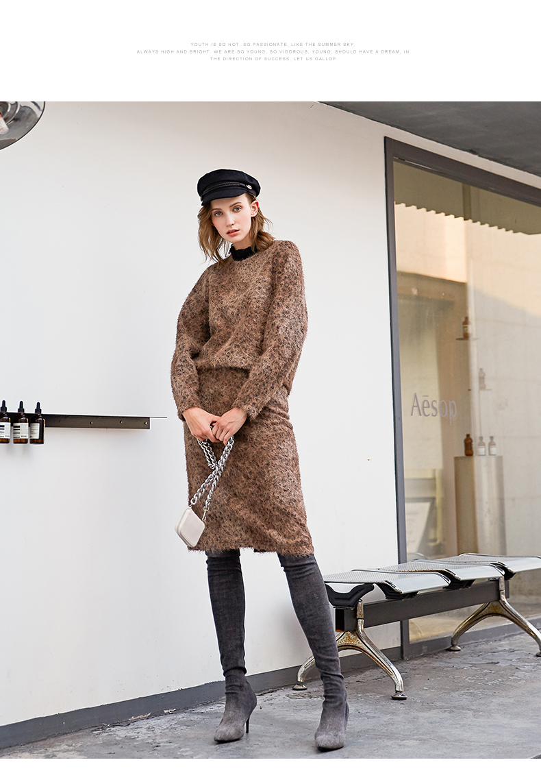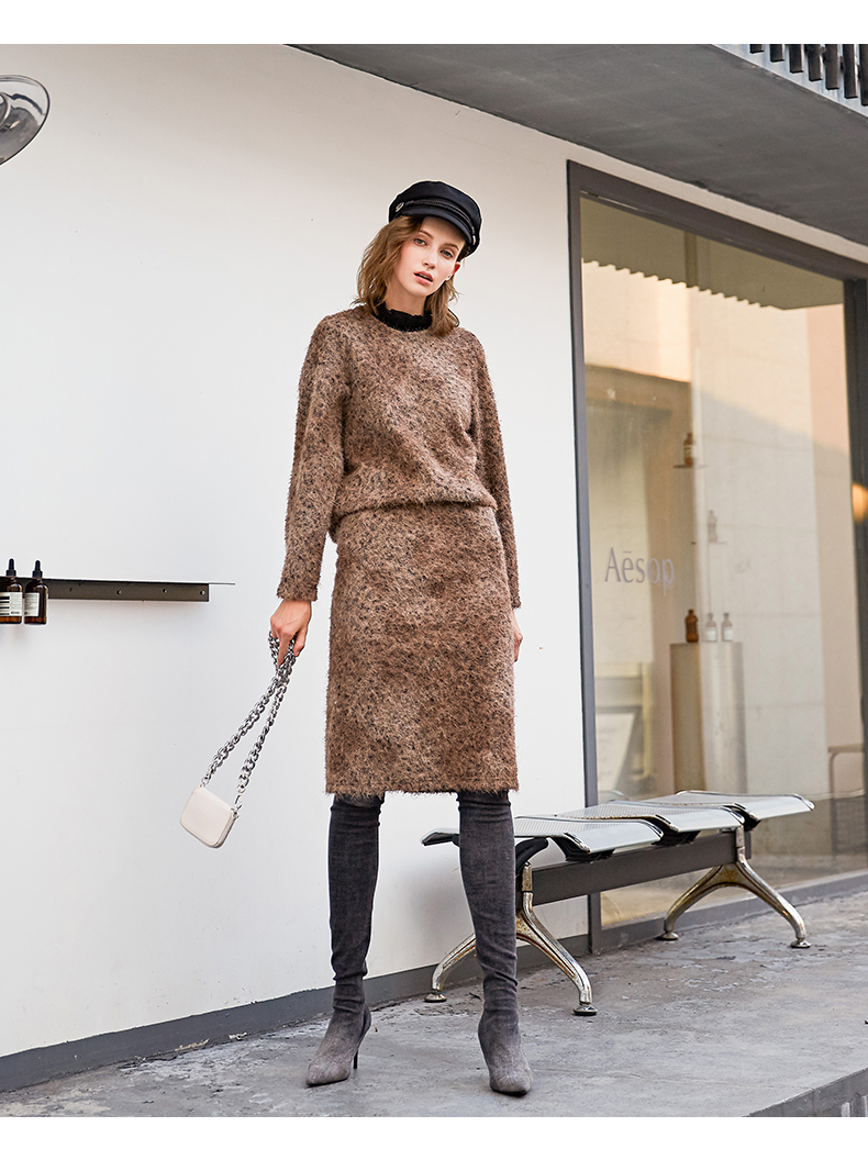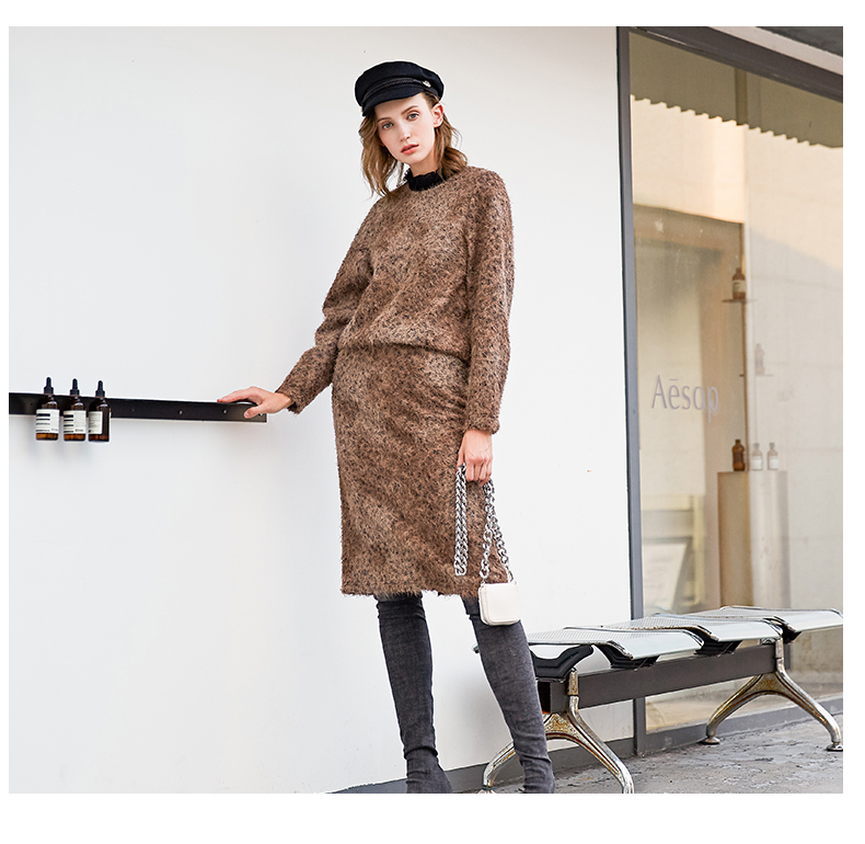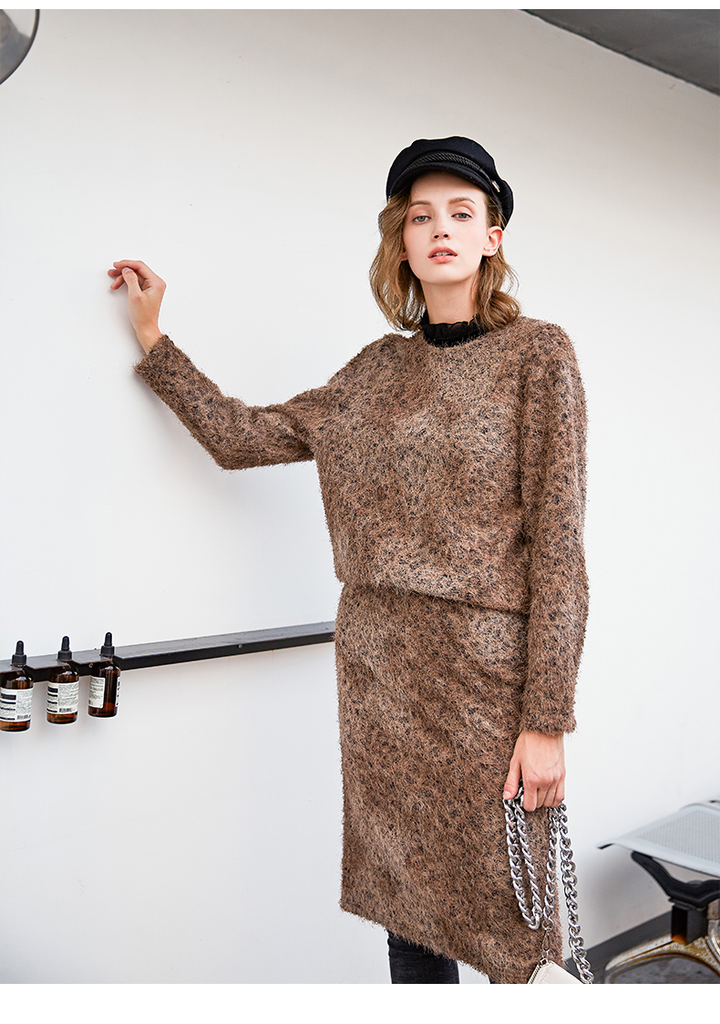 oldcolour秋季新款时尚气质通勤圆领装饰长袖套头衫女P330106A1