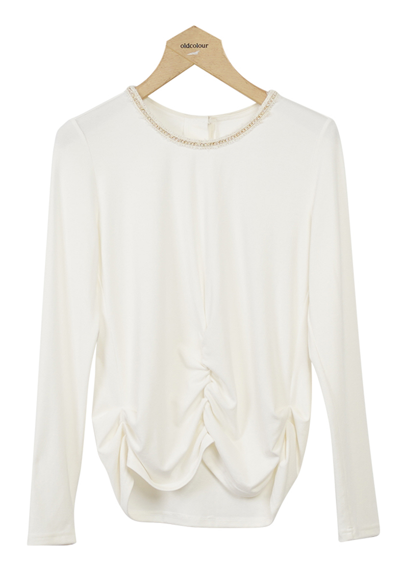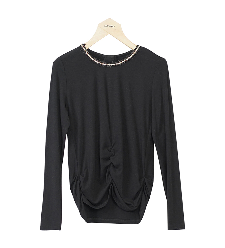 oldcolour圆领长袖T恤冬季新款纯色设计感薄款上衣女O43023309