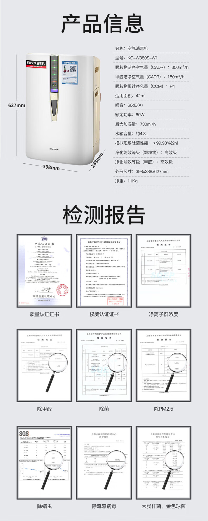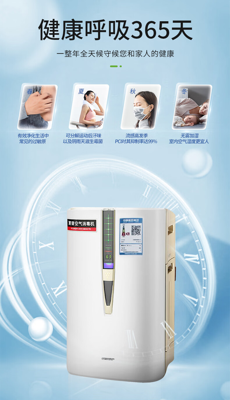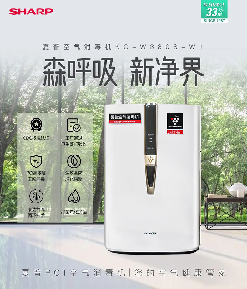 夏普(SHARP)空气净化器卫健委认证消毒机家用加湿卧室除甲醛雾霾净离子群杀菌除过敏原KC-W380S-W1