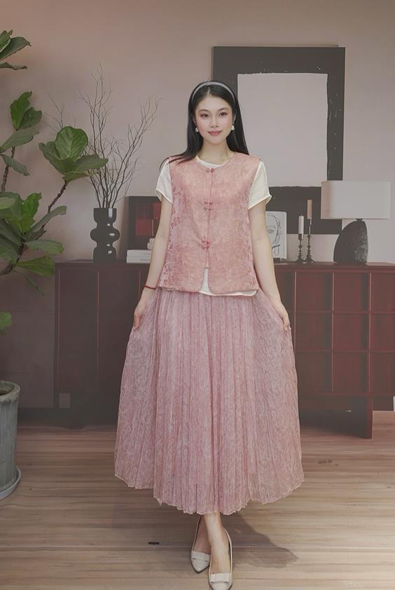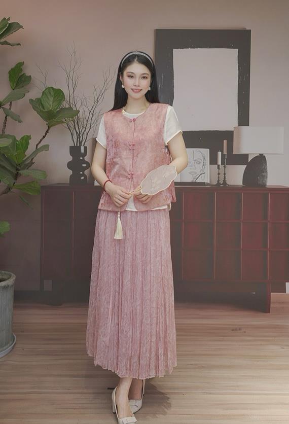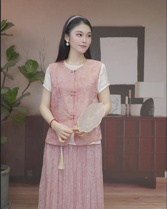 司歌国风穿搭提花马甲真丝上衣复古优雅T93G8008