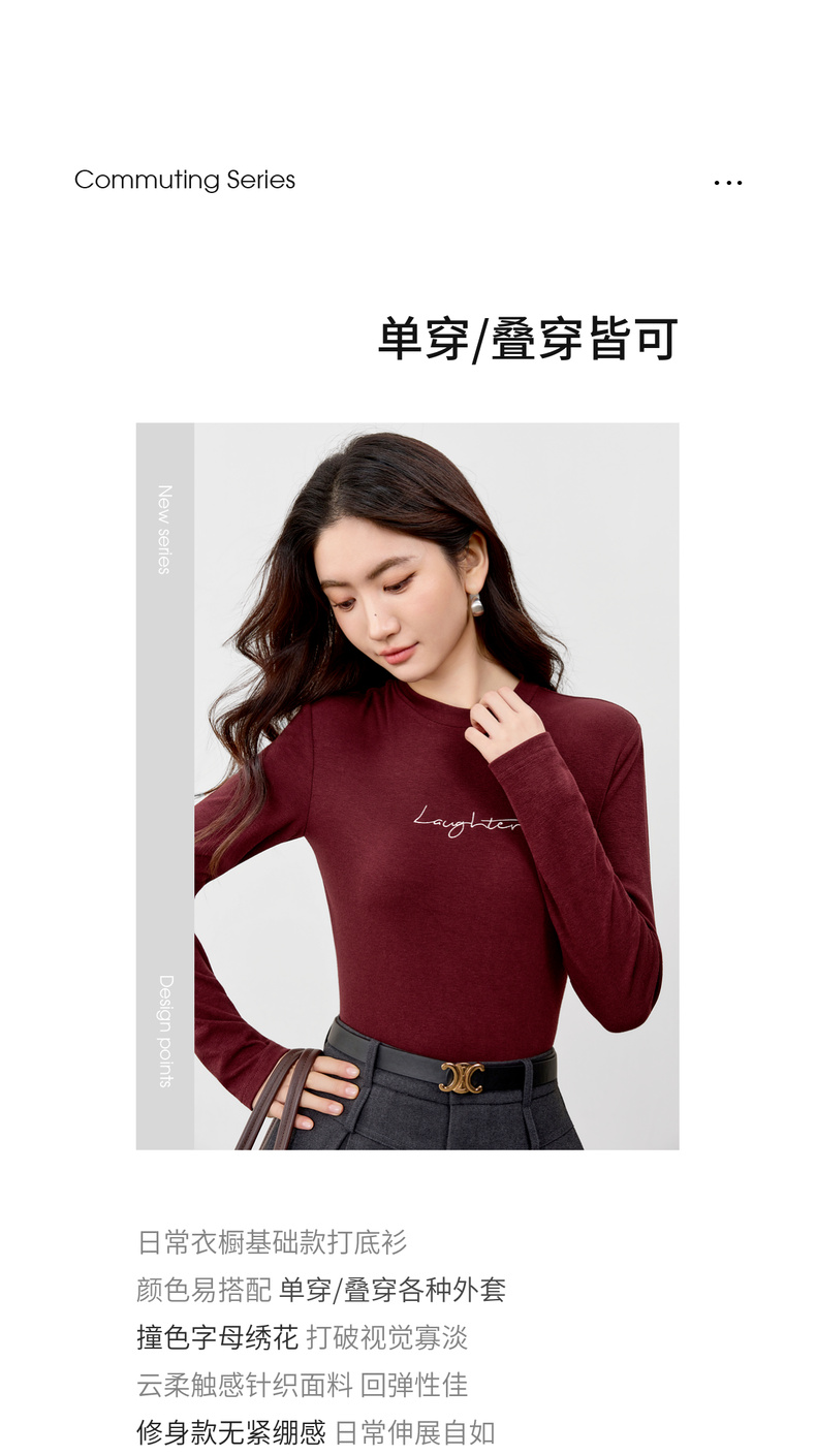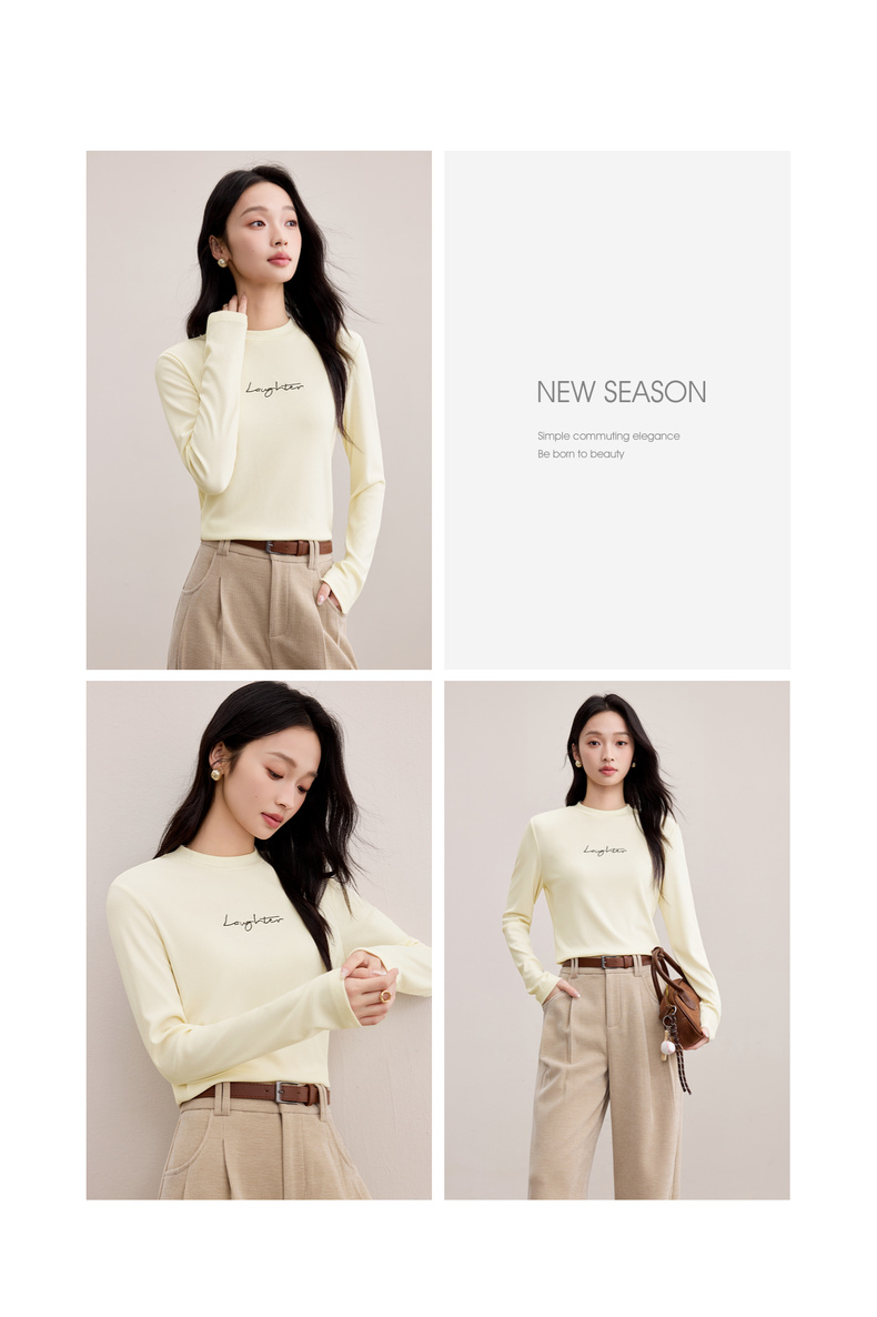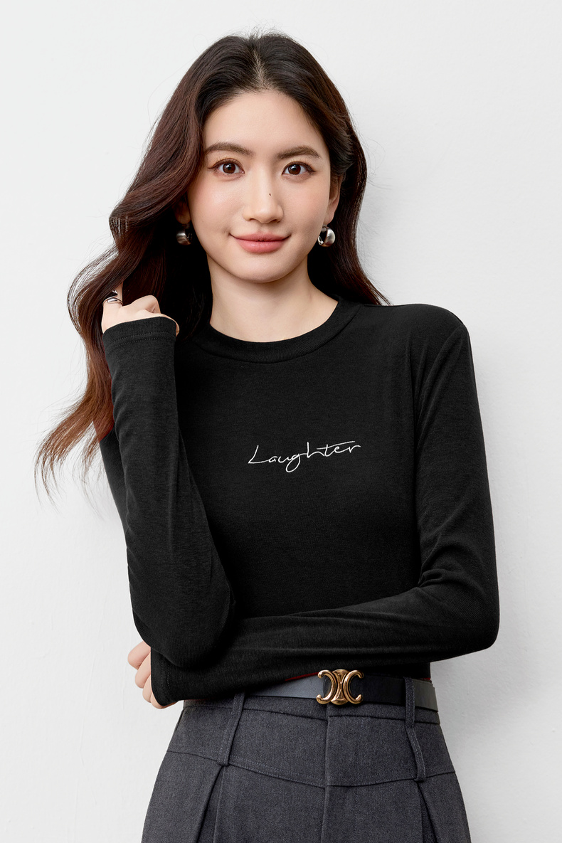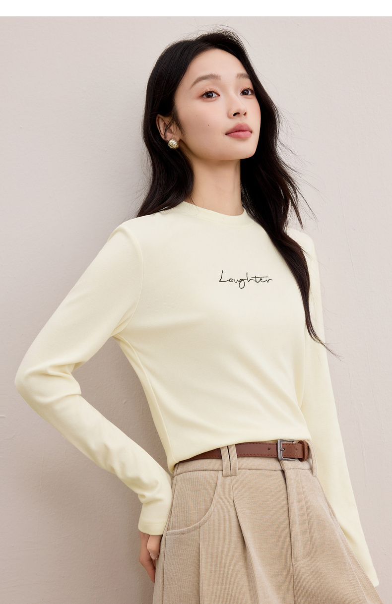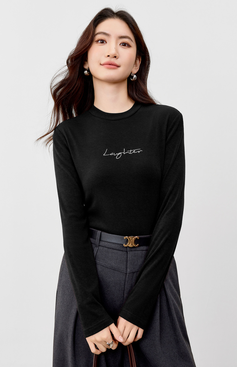 【内购】【多色可选】通勤圆领撞色字母绣花修身弹力针织外穿内搭打底衫-153SF3034