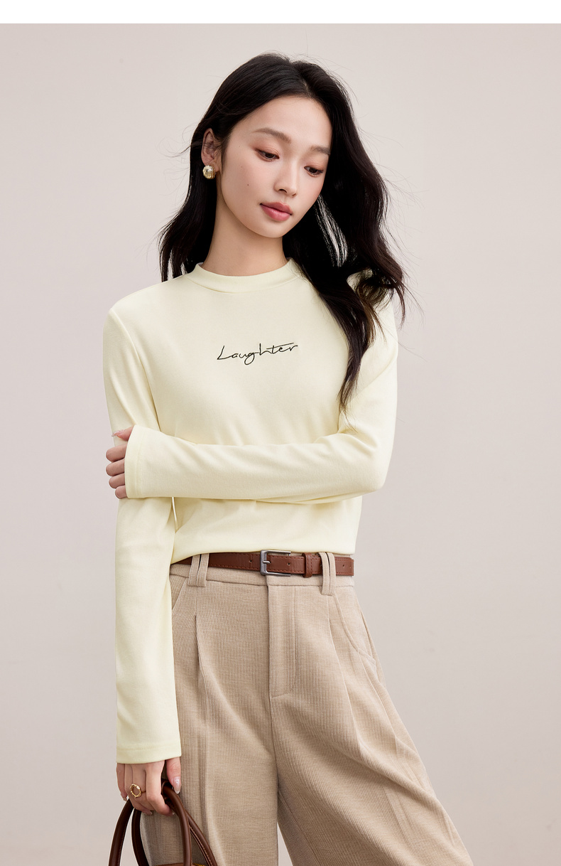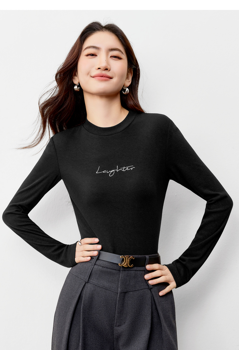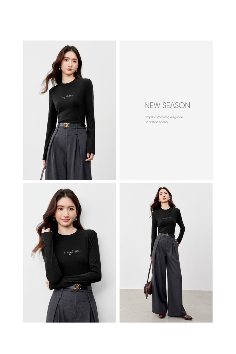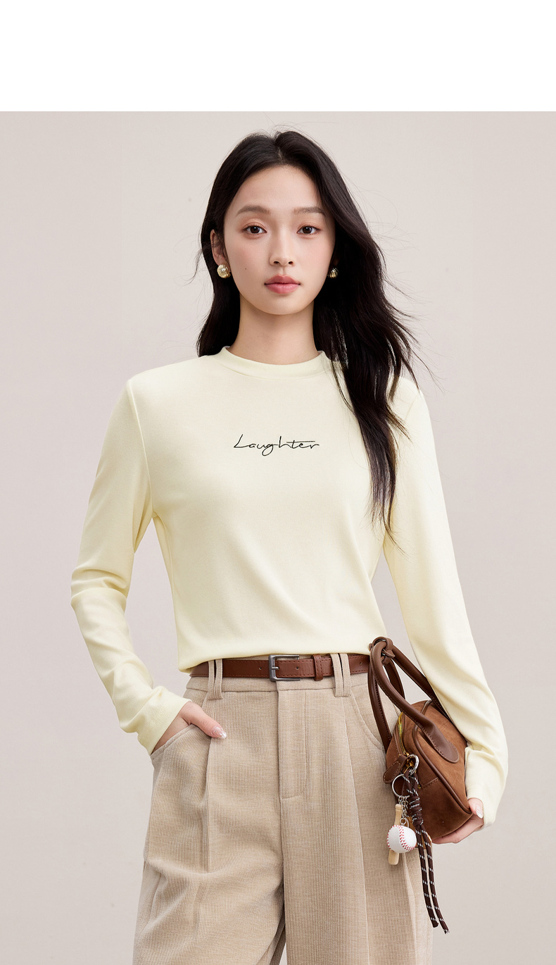 【内购】【多色可选】通勤圆领撞色字母绣花修身弹力针织外穿内搭打底衫-153SF3034