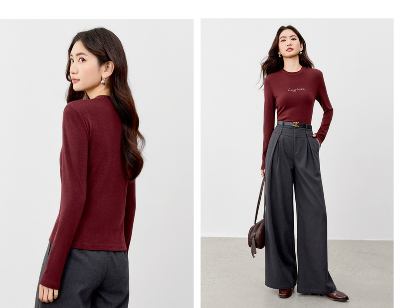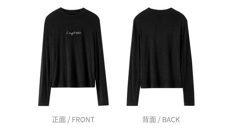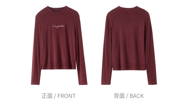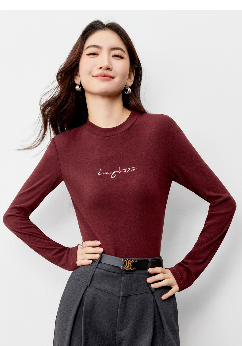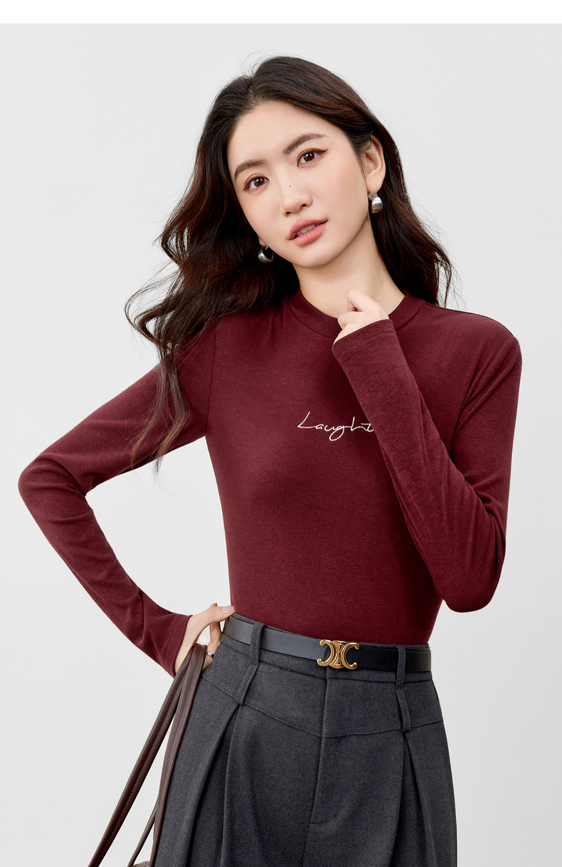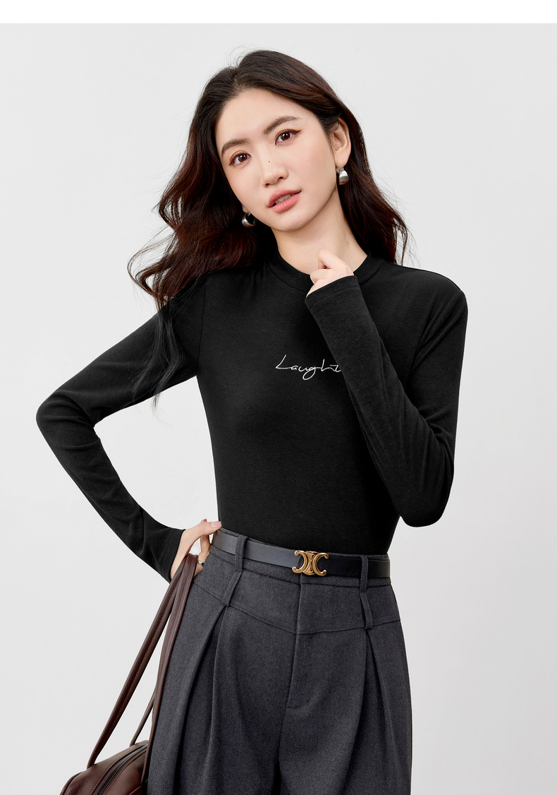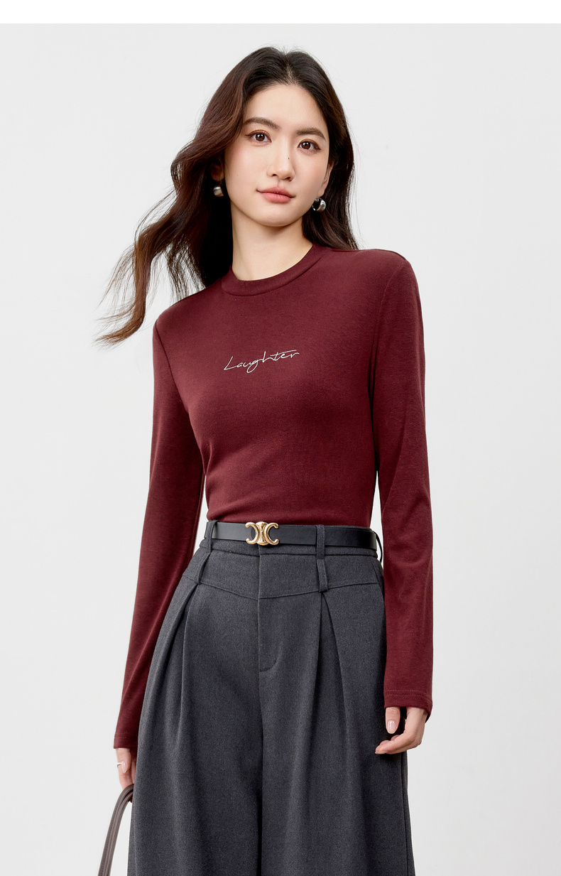 【内购】【多色可选】通勤圆领撞色字母绣花修身弹力针织外穿内搭打底衫-153SF3034