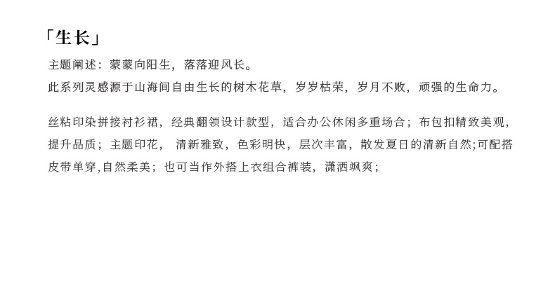 TANGY Collection/天意精品生长系列柯纱丝粘印染衬衫裙