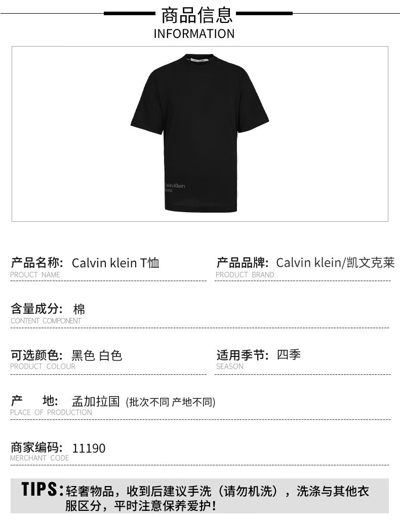 卡尔文·克莱恩(Calvin Klein)CK 男士时尚潮流休闲T恤 11190
