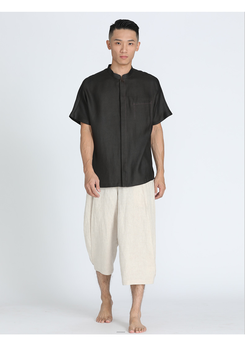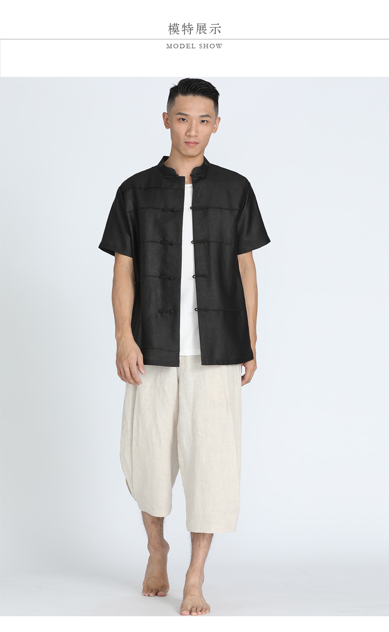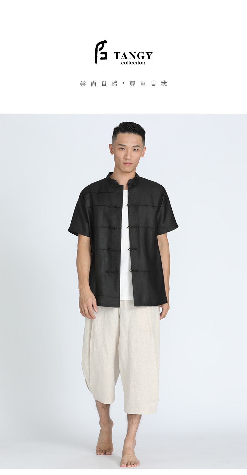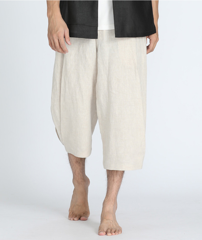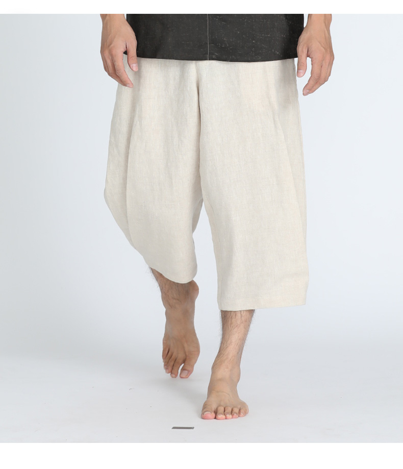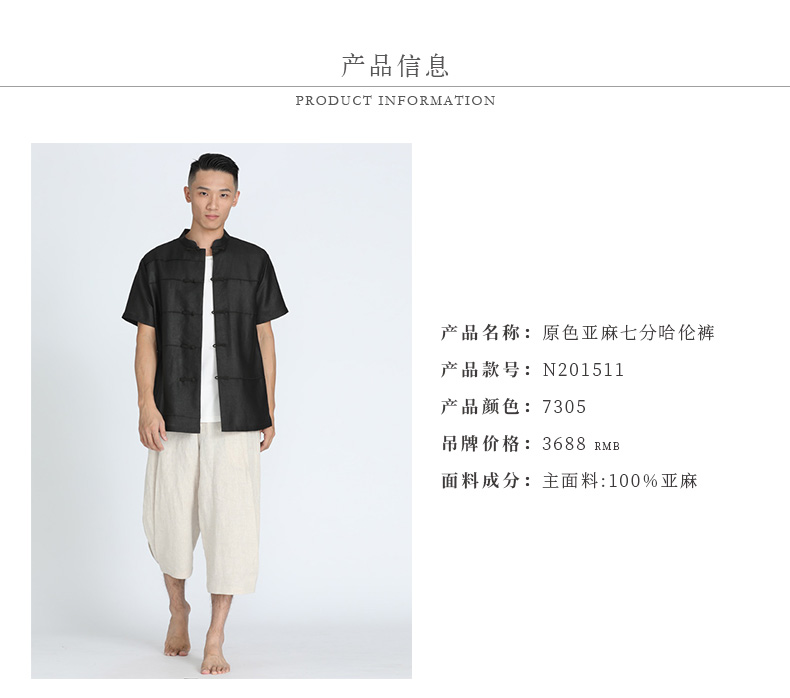 TANGY Collection/天意精品春夏新品男士休闲裤原色亚麻七分哈伦裤