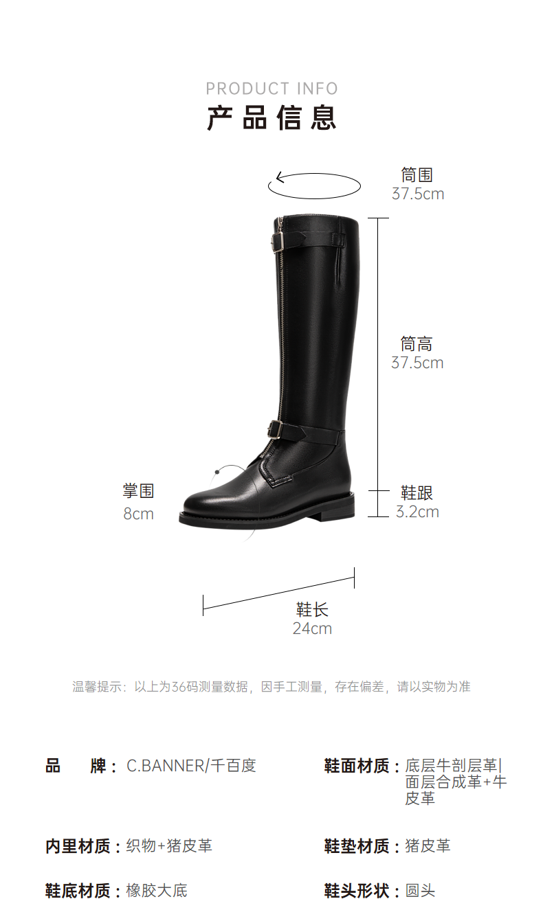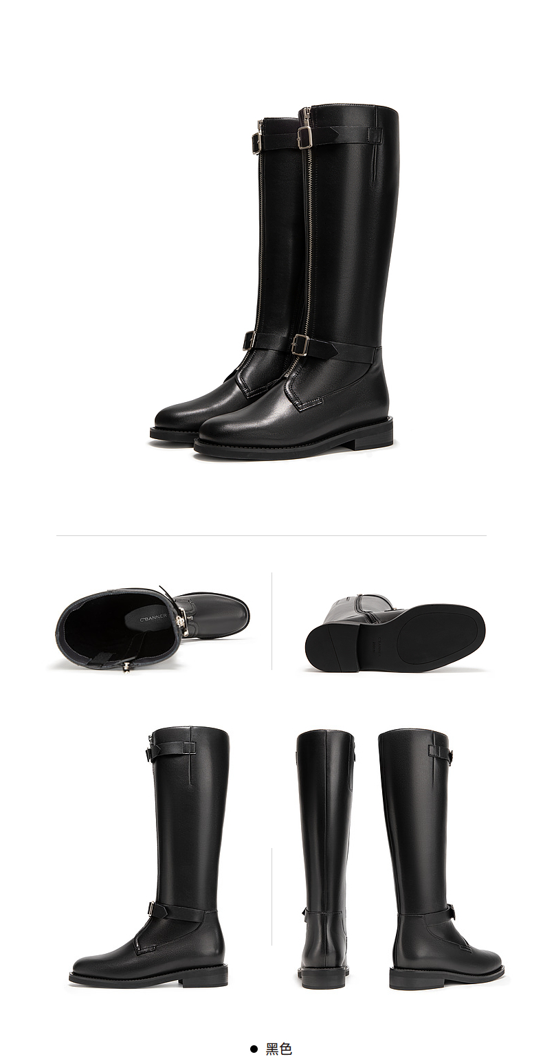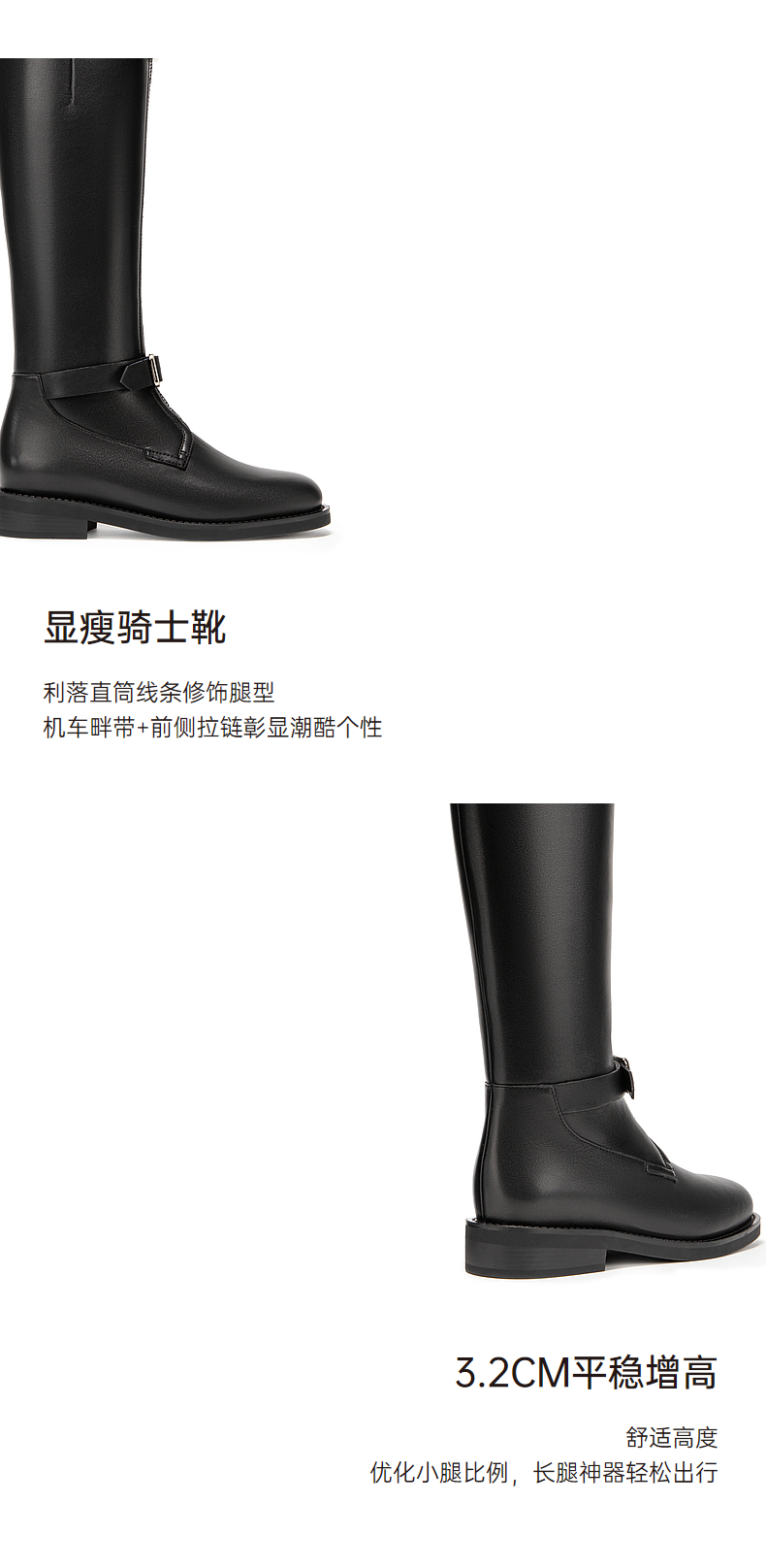 千百度厚底增高骑士靴女款冬季平稳瘦瘦靴黑色高筒长靴A24591816