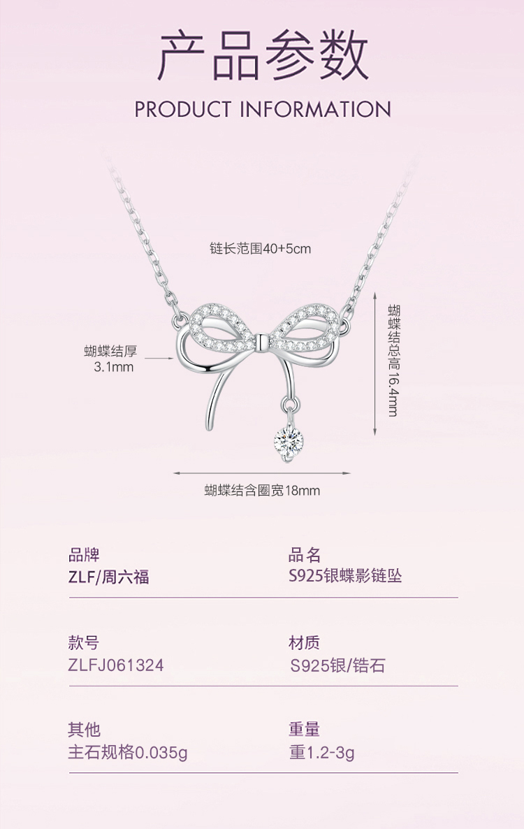 周六福S925银蝶影项链ZLFJ061324★