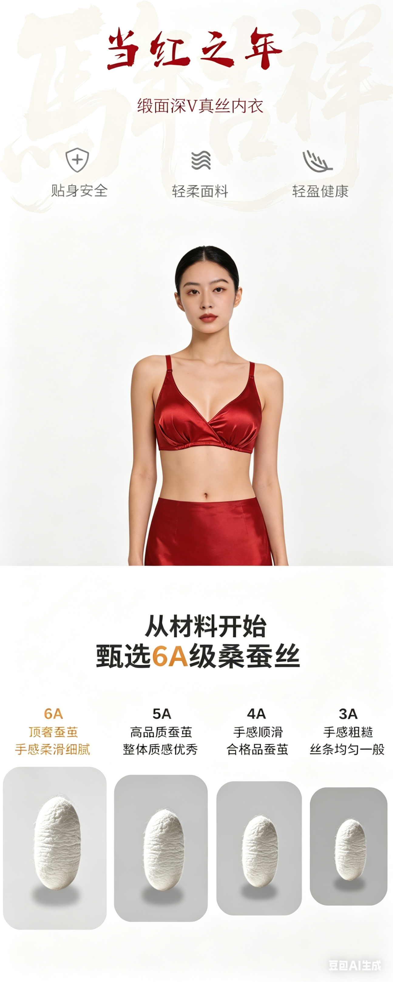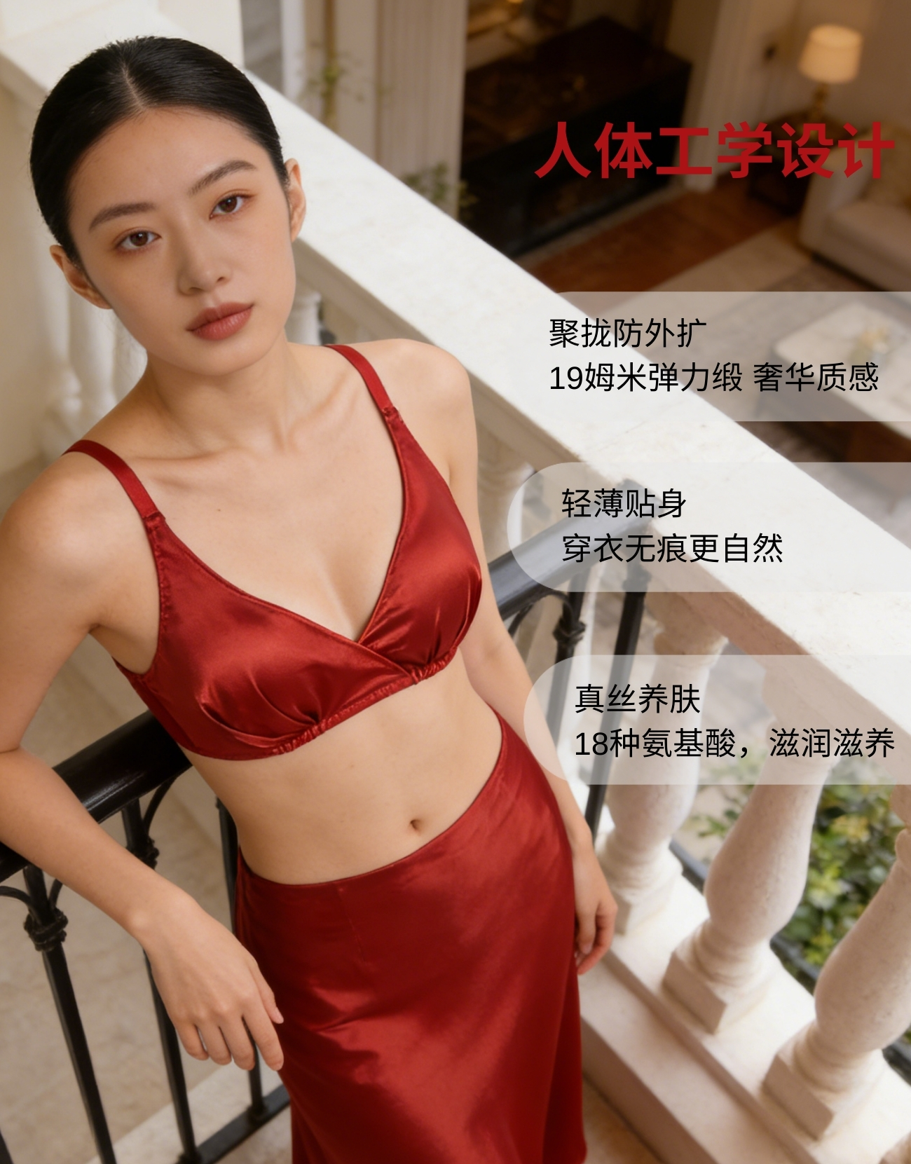 缎面深V真丝内衣#桑蚕丝