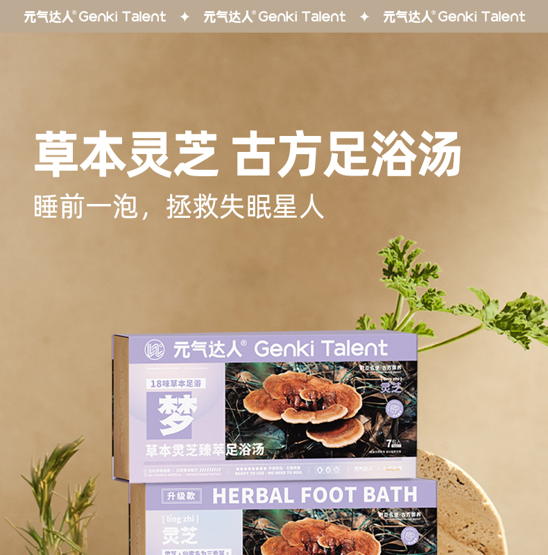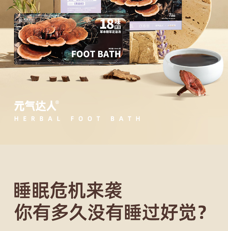 元气达人灵芝足汤草本足浴睡眠养生泡脚包速溶泡澡18种草本精华液