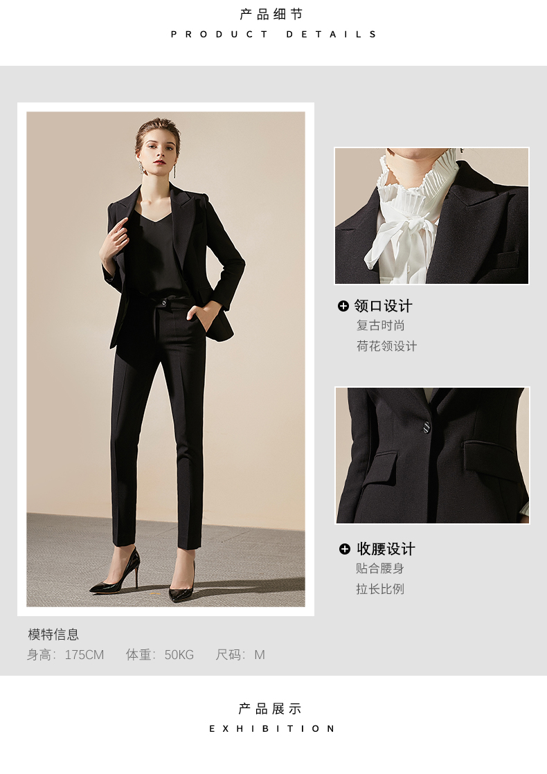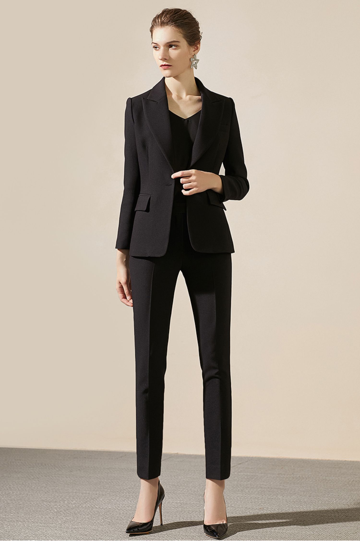 IWY/高端黑色西装套装女新款气质商务公务员面试正装售楼部工作服C13315+P13315