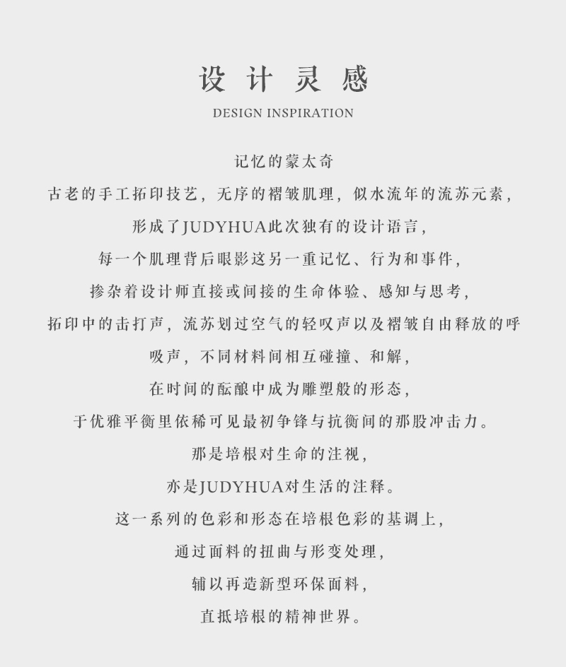以极简建筑风格,诠释对生活美学之独特理解,JUDYHUA以作品触动您心。更多新款上架,请亲临JUDYHUA STUDIO试穿选购。预约电话:021-62663449,18201881913