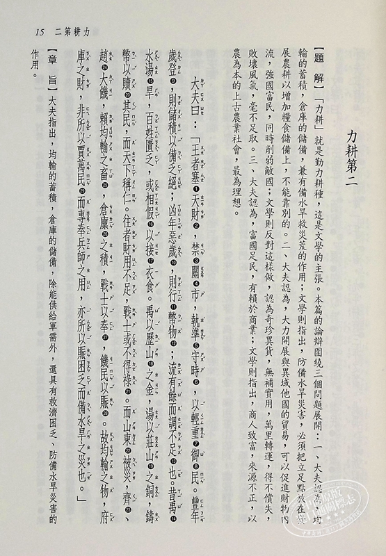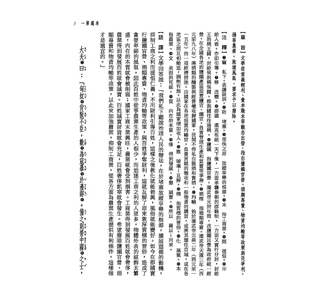 過程中,代表官方的丞相、御史大夫等和代表民間的文學、賢良等,兩派人馬脣槍舌劍,立場分明,展開激烈的論戰。官方代表推崇法家的富國強兵,極力為施政方針辯護,並痛斥對手的無知淺薄;民間代表則奉儒家為圭臬,大膽地為百姓發聲,並毫不留情的指責在上位者不知民間疾苦,苛政害民。從中我們不僅能了解當時大環境的樣貌,更可一窺漢武帝獨尊儒術後的學術風氣。本書參考各種版本,校正和補足許多正文的錯誤及衍脫,各篇的題解提綱挈領,注釋與語譯則雅俗共賞,允稱最佳的《鹽鐵論》讀本。