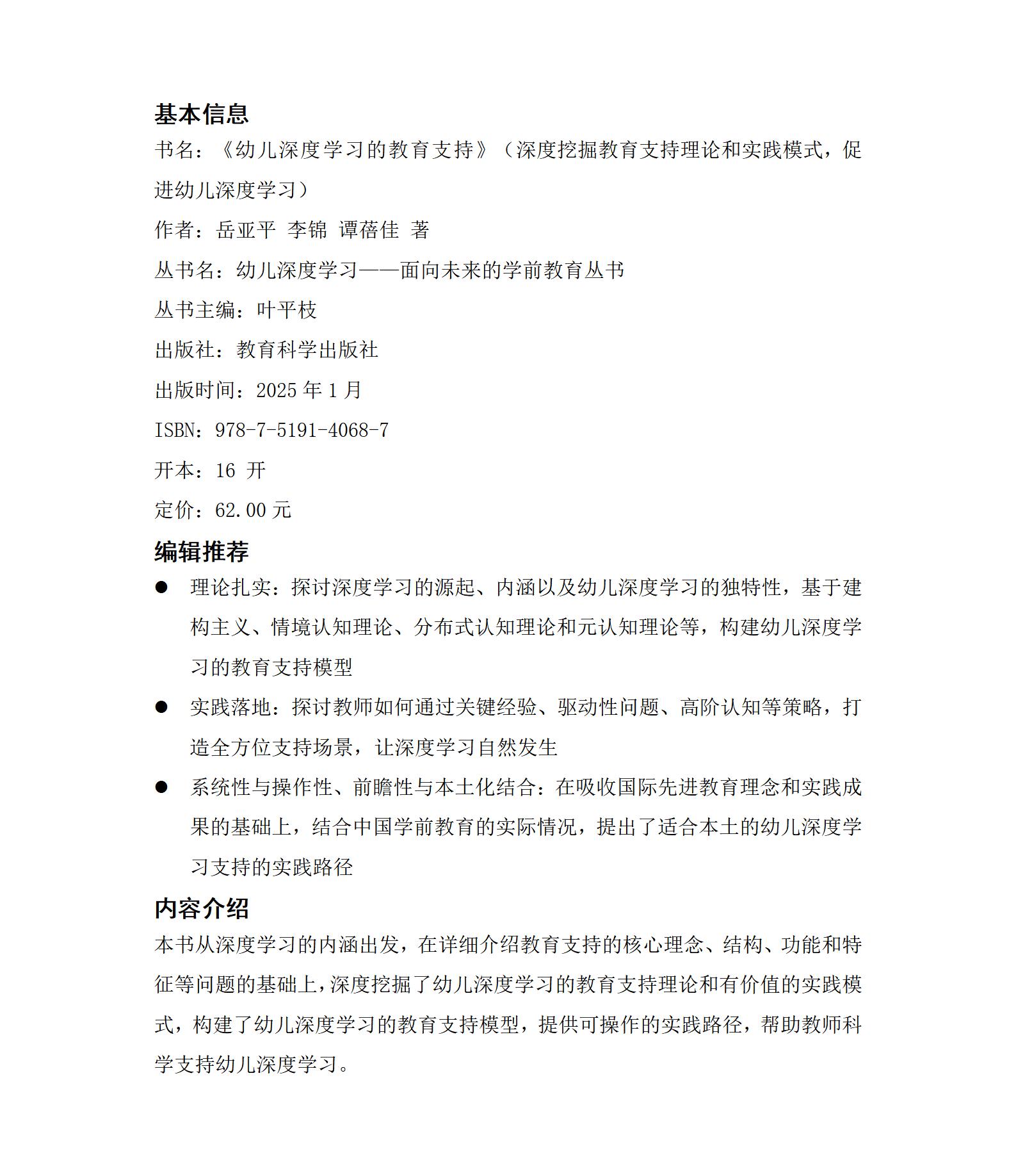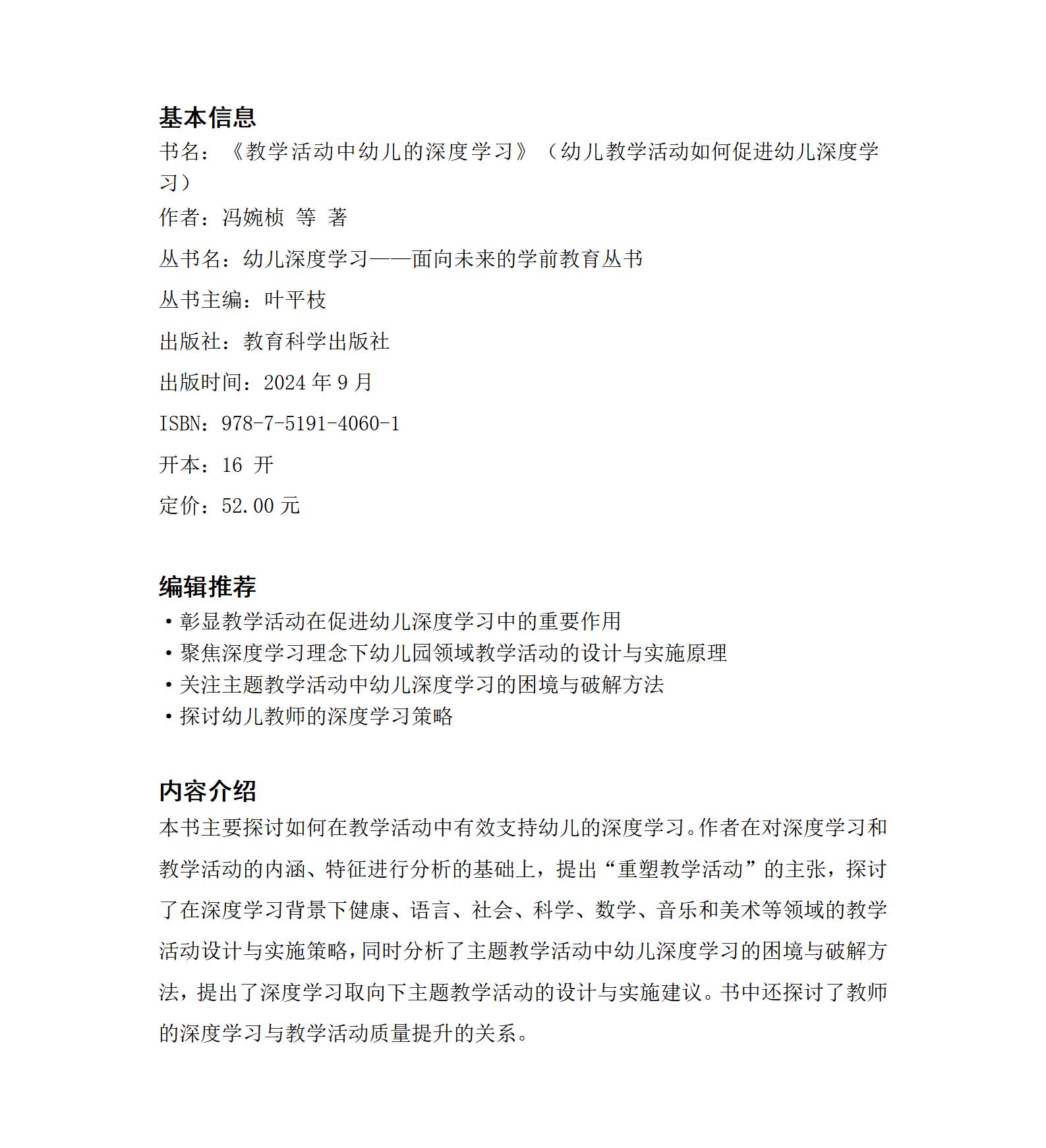 【专属链接】单册包邮(除偏远地区)幼儿深度学习——面向未来的学前教育丛书