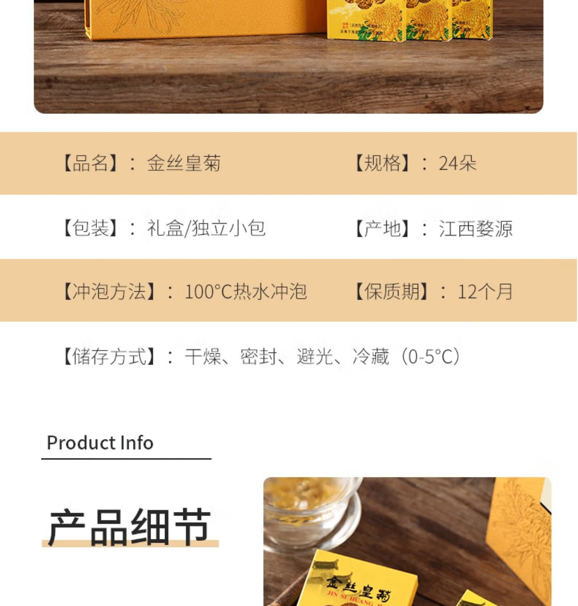 婺源有机金丝皇菊24朵一盒