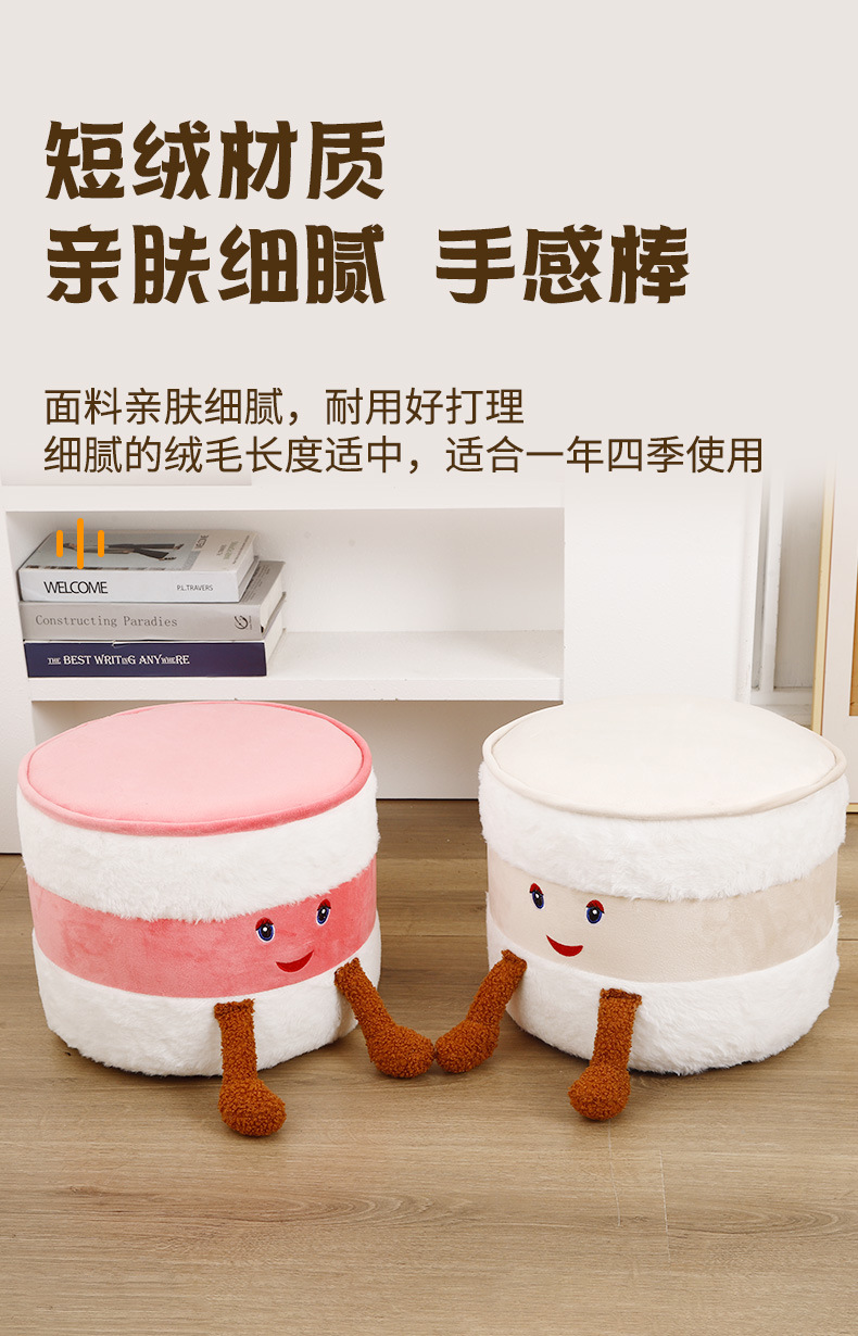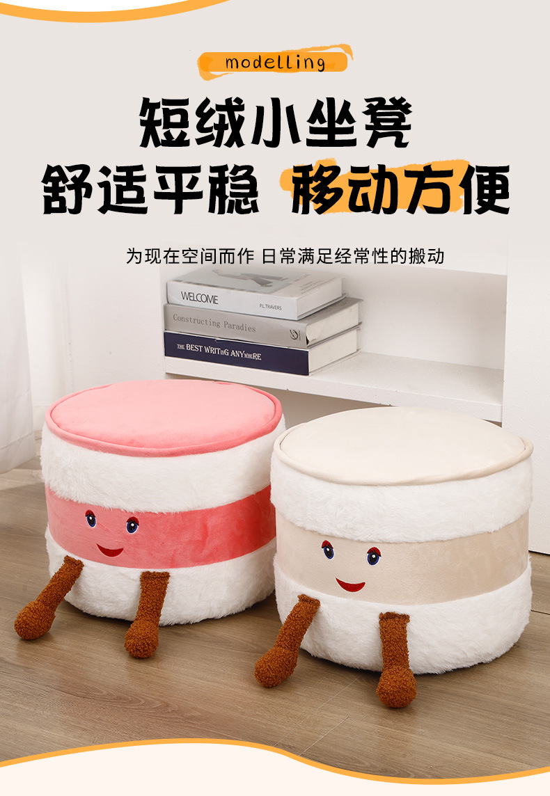 【短绒可爱坐凳!亲肤细腻】可爱毛绒小凳子家用客厅面包坐墩客厅榻榻米蒲团换鞋凳民宿脚凳。ra