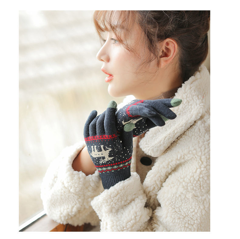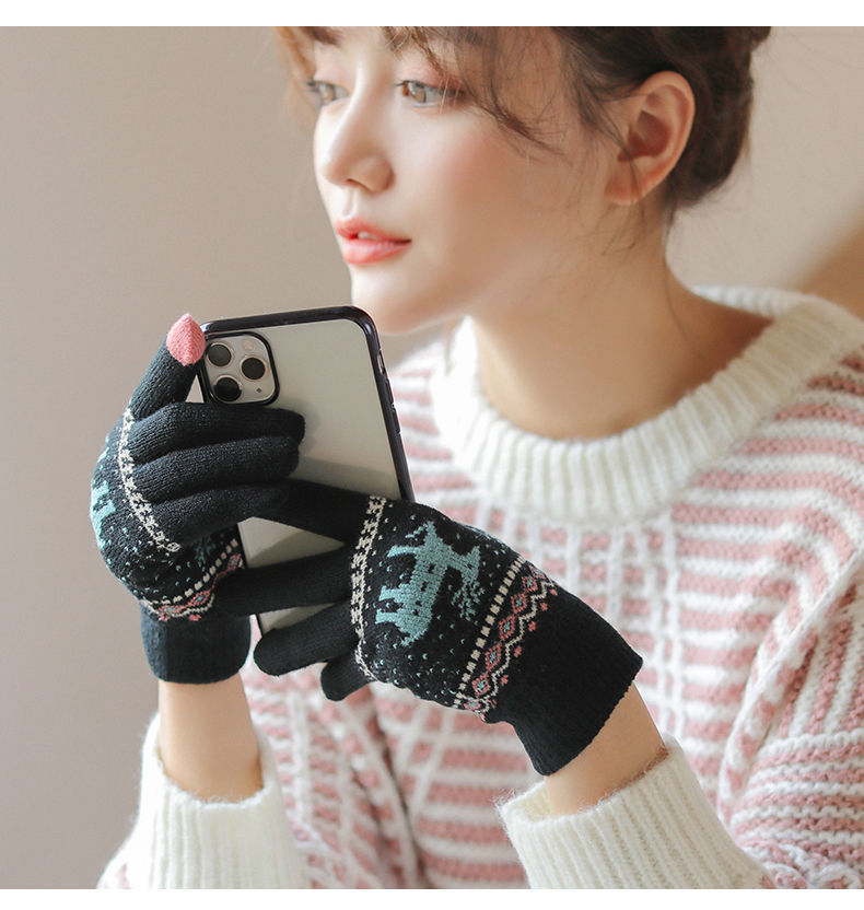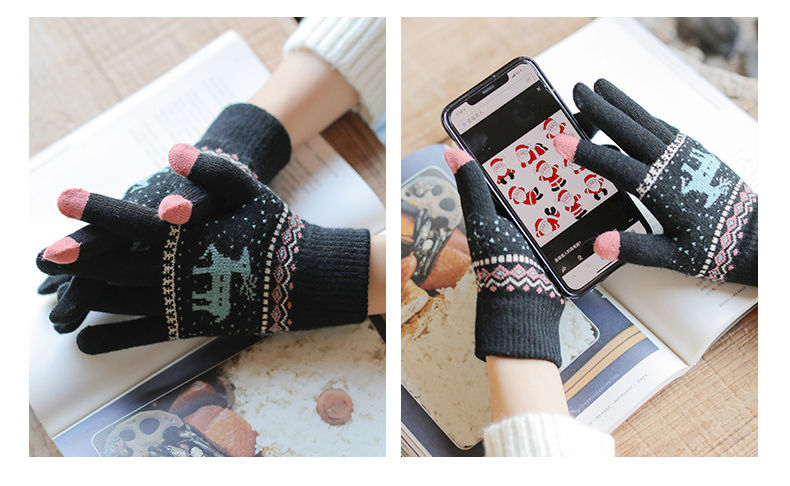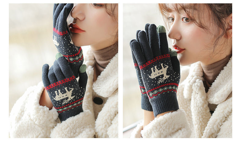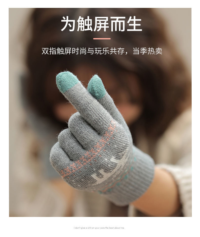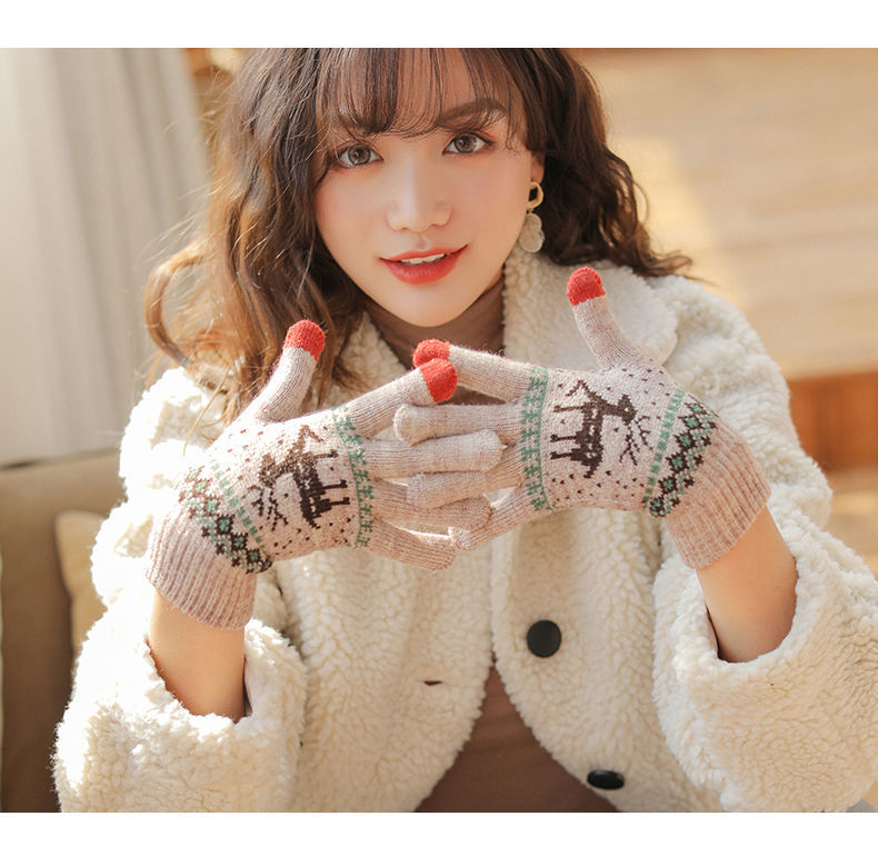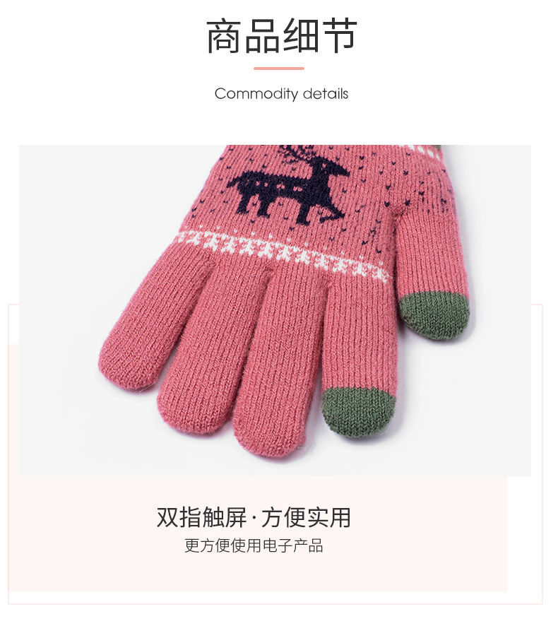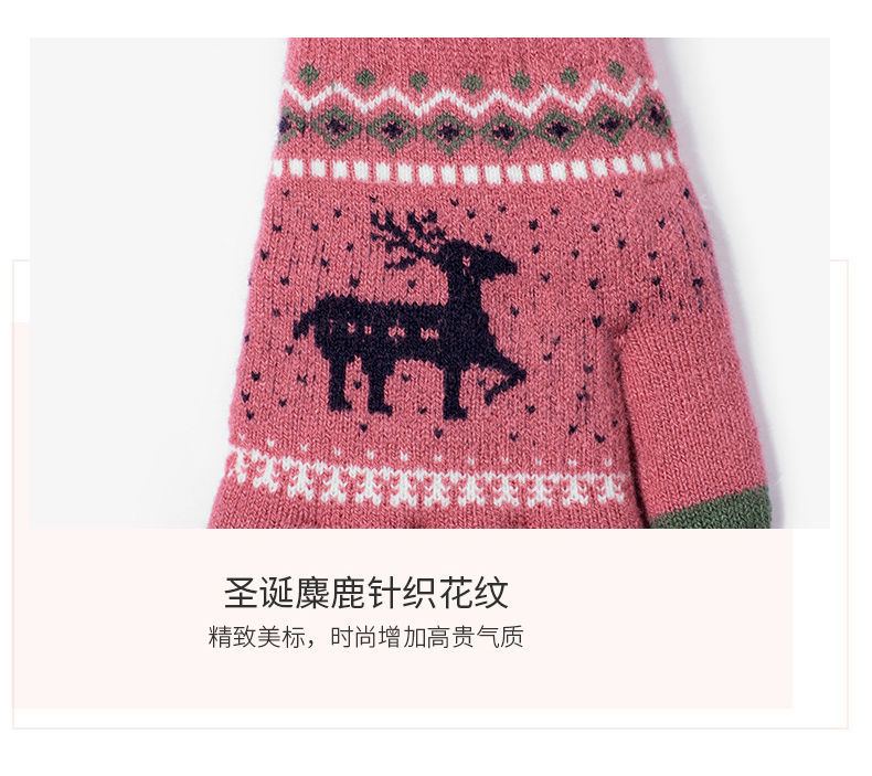 买一送一!【暖心“手”护!美丽不冻手】圣诞麋鹿针织手套,可触屏设计!打游戏玩手机不冻手,修饰手型弹力面料,柔软舒适不易起球,轻易不褪色针织保暖手套,圣诞节送礼优选