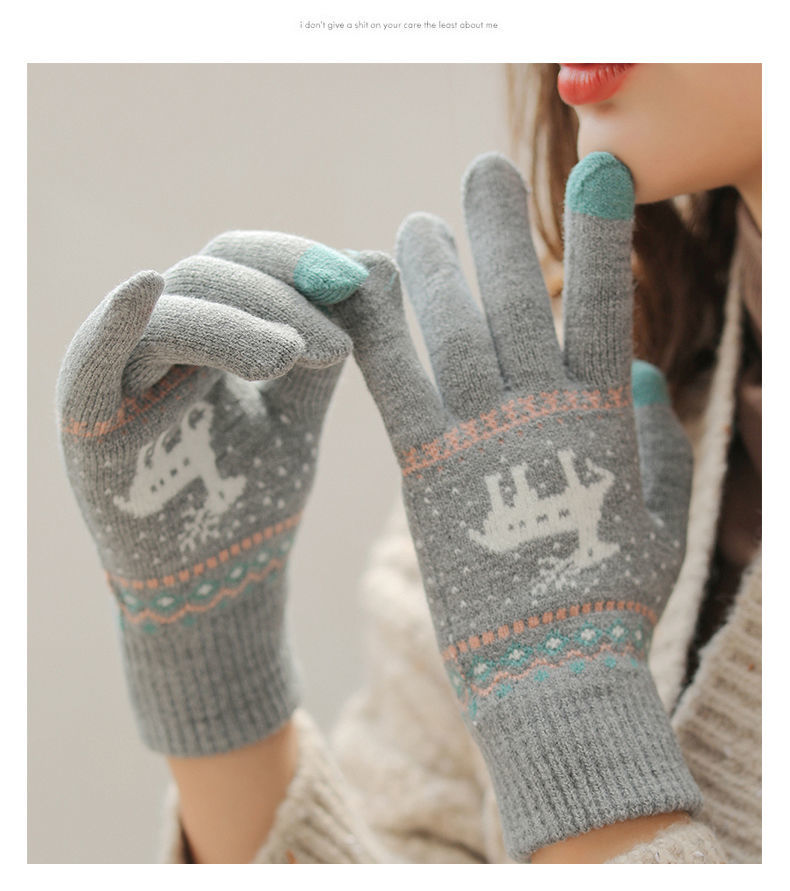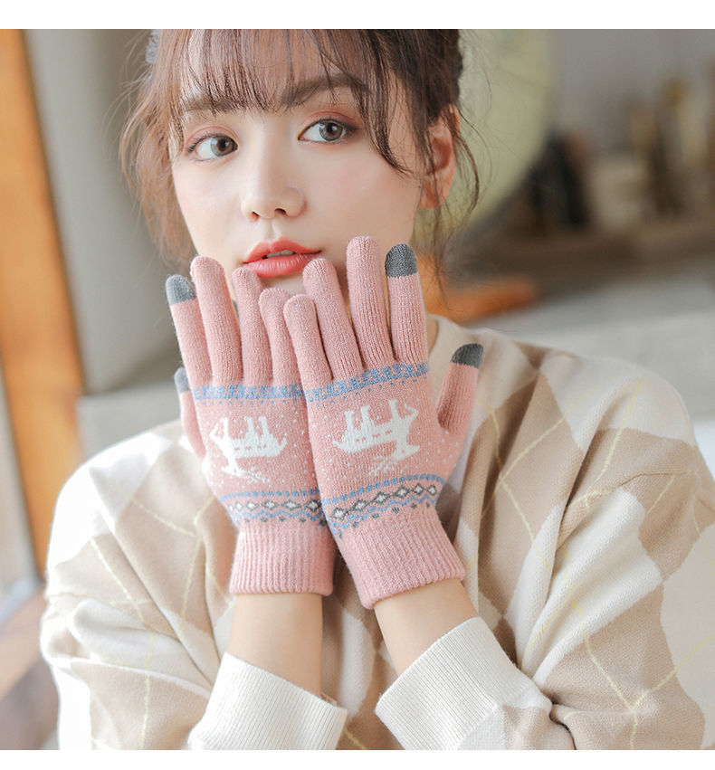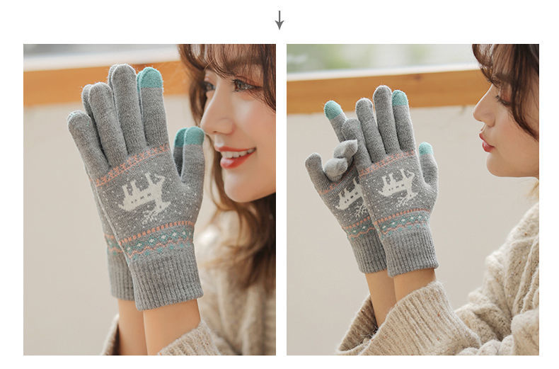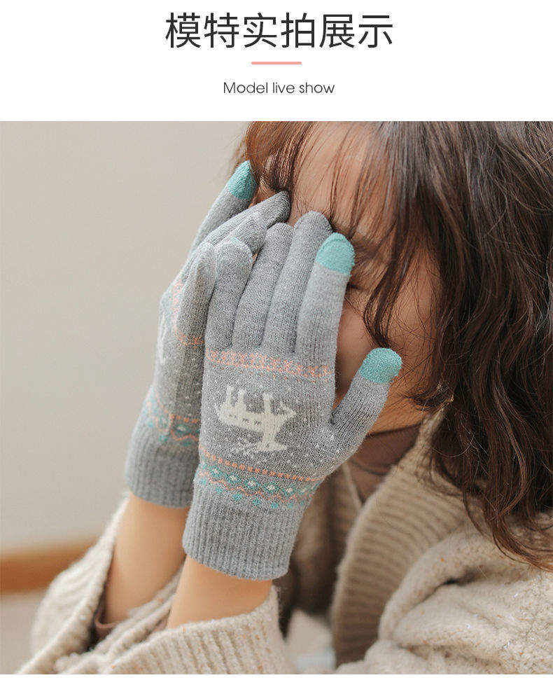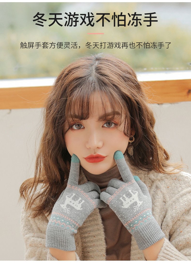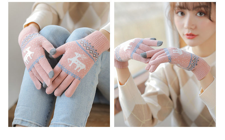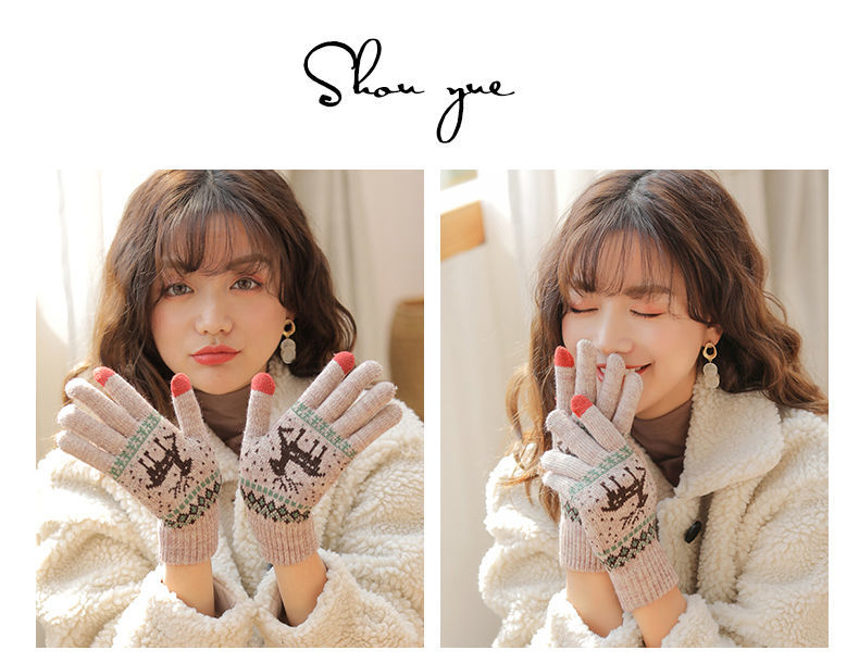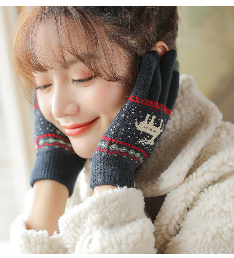 买一送一!【暖心“手”护!美丽不冻手】圣诞麋鹿针织手套,可触屏设计!打游戏玩手机不冻手,修饰手型弹力面料,柔软舒适不易起球,轻易不褪色针织保暖手套,圣诞节送礼优选