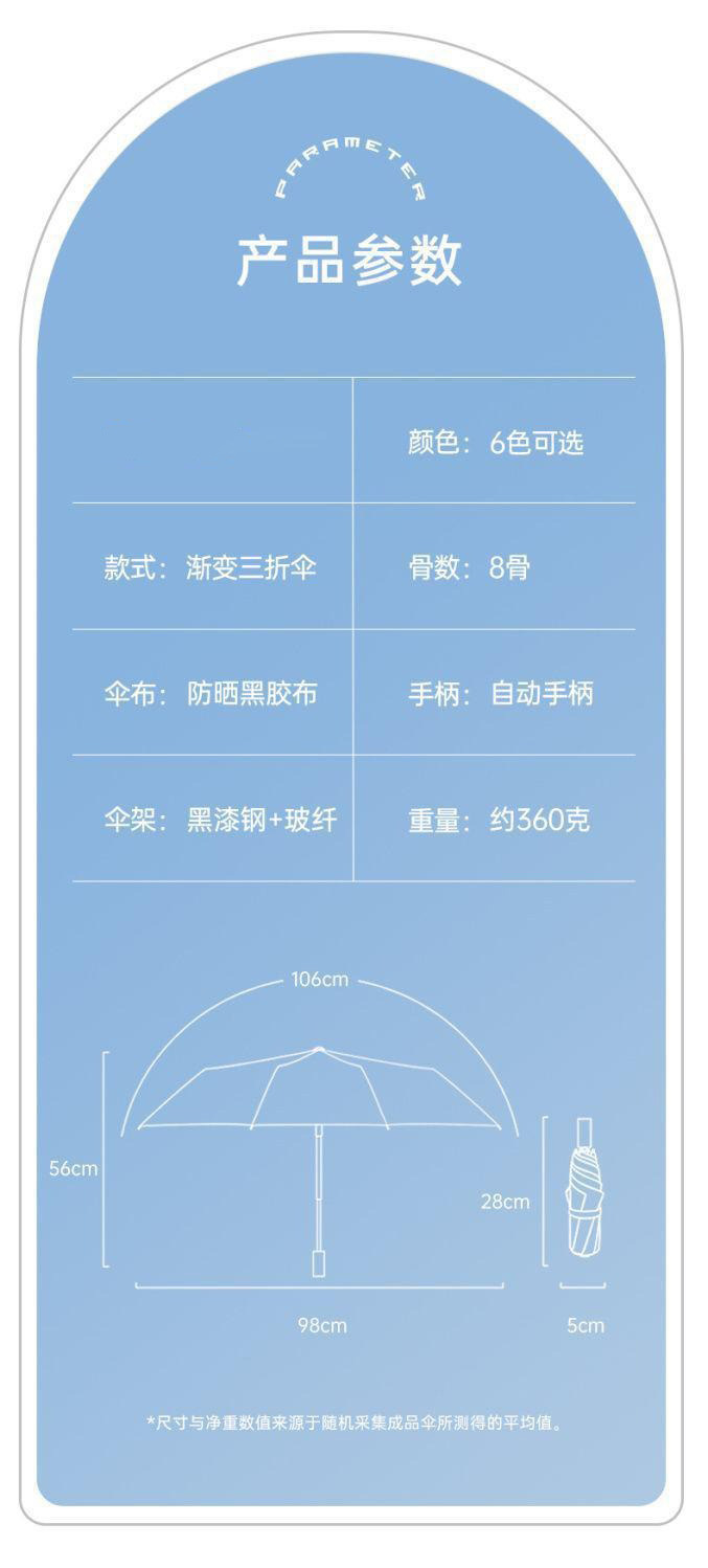 【超轻❗盐系渐变自动伞】全自动UPF50+黑胶渐变折叠伞晴雨两用女生便携防晒伞。rh