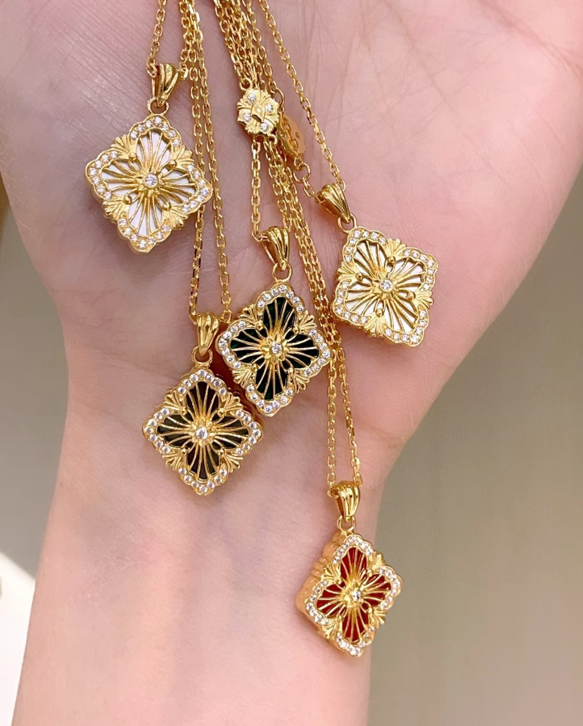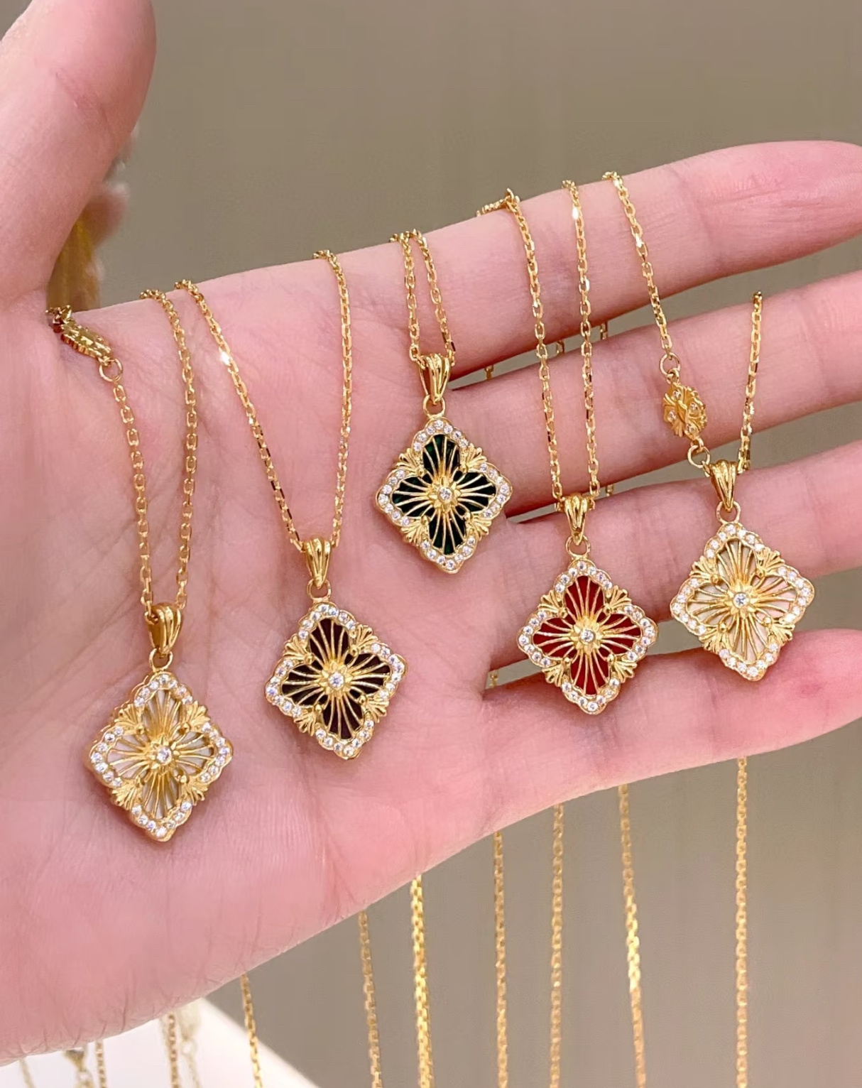 【材质】黑松石、白贝母、粉松石、绿松石、红玛瑙;镀18K真金,5A级锆石
