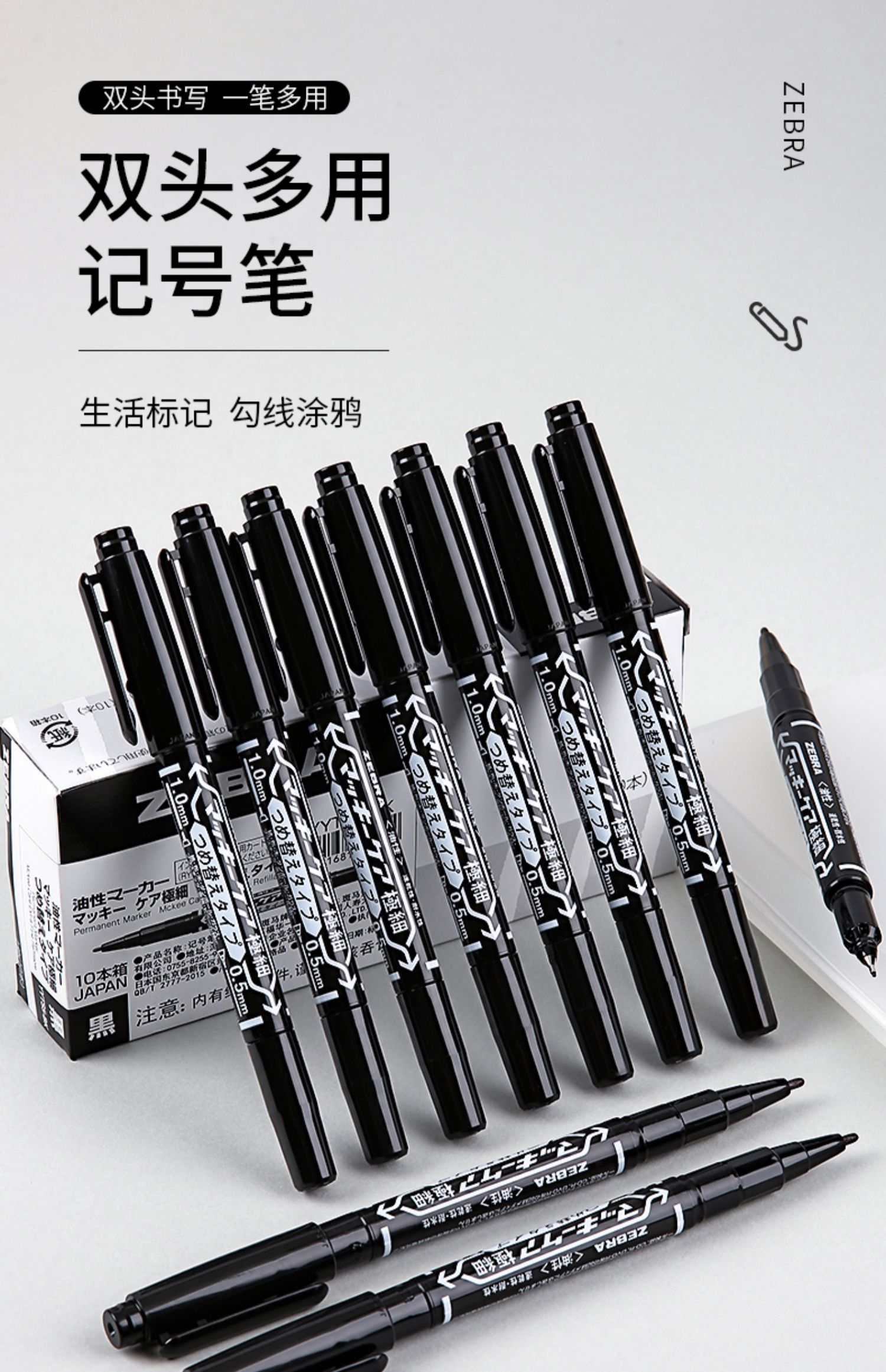 斑马极细小双头记号笔彩色极细两头马克笔勾线笔学生用美术描边彩色