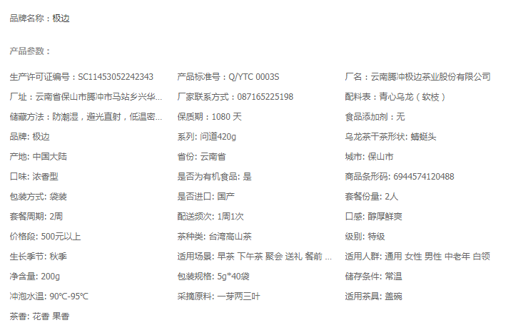 极边有机金乌龙茶 问道 20g*10/盒