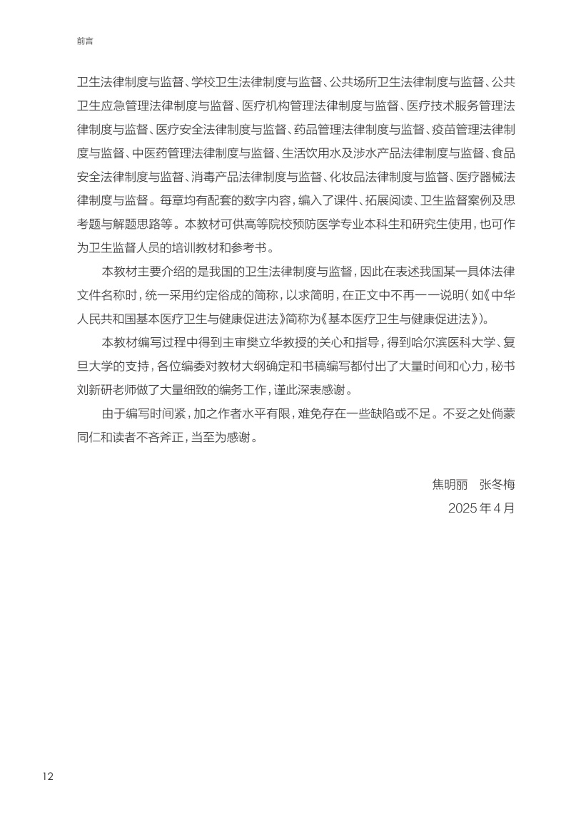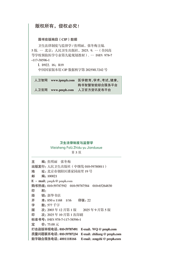 卫生法律制度与监督学 第5五版 十四五规划教材 全国高等学校教材 焦明丽 张冬梅 供预防医学类专业用9787117385961人民卫生出版社