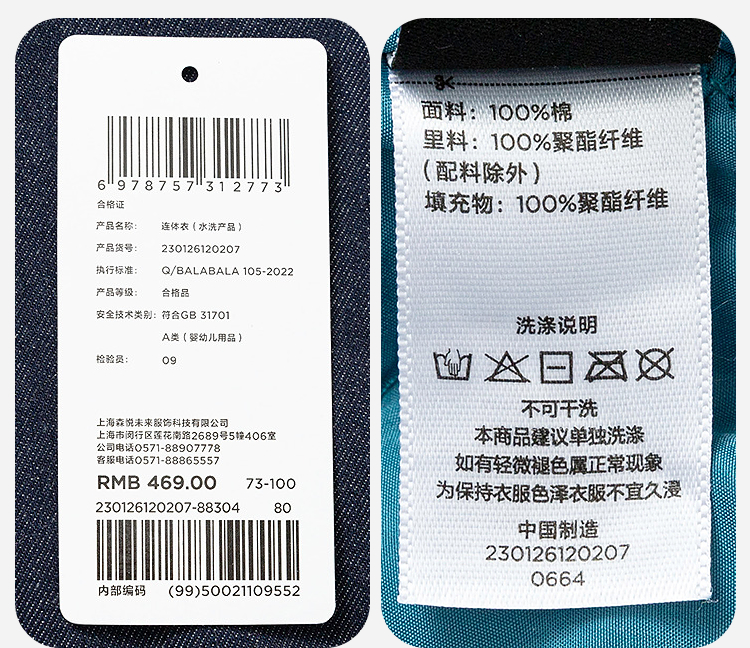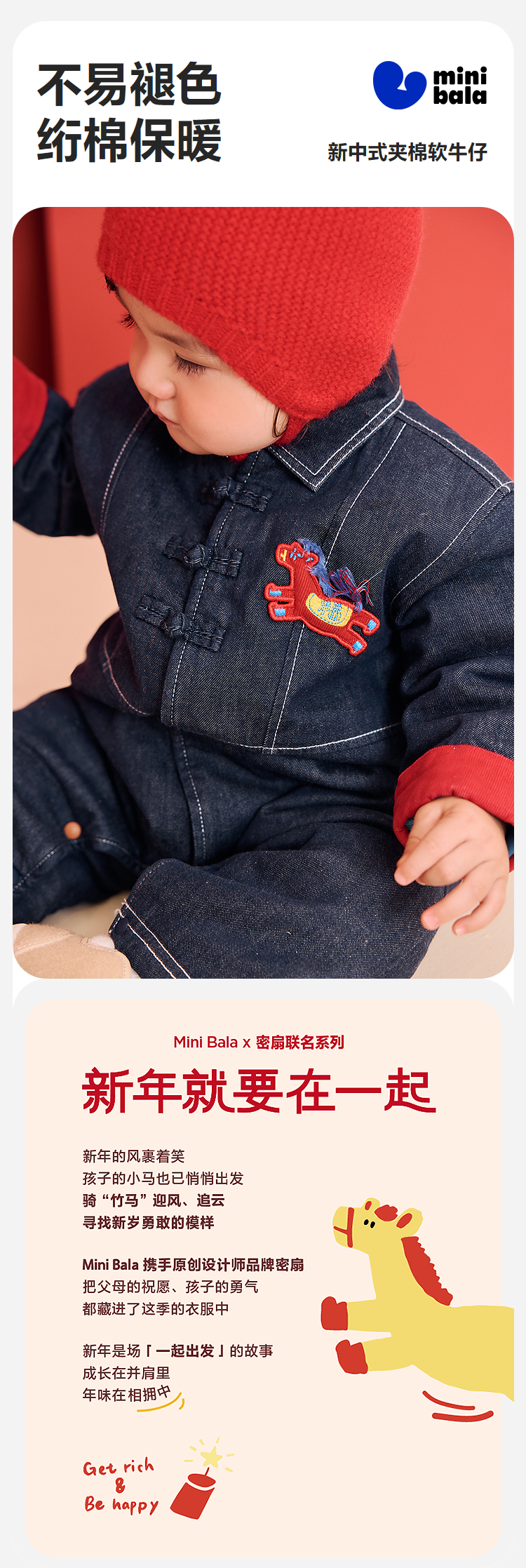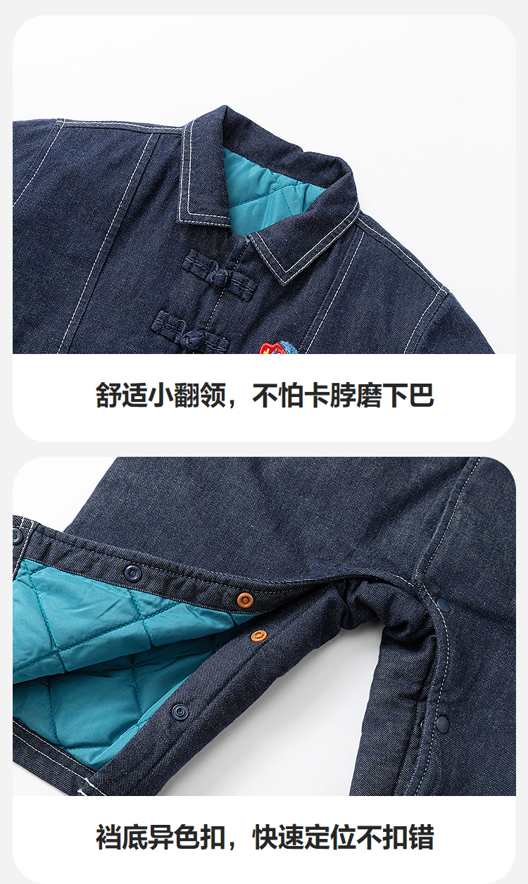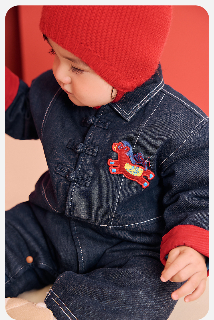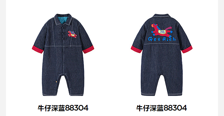 【泉水牛仔】迷你巴拉巴拉宝宝连体衣新生儿牛仔外出爬服秋冬新款