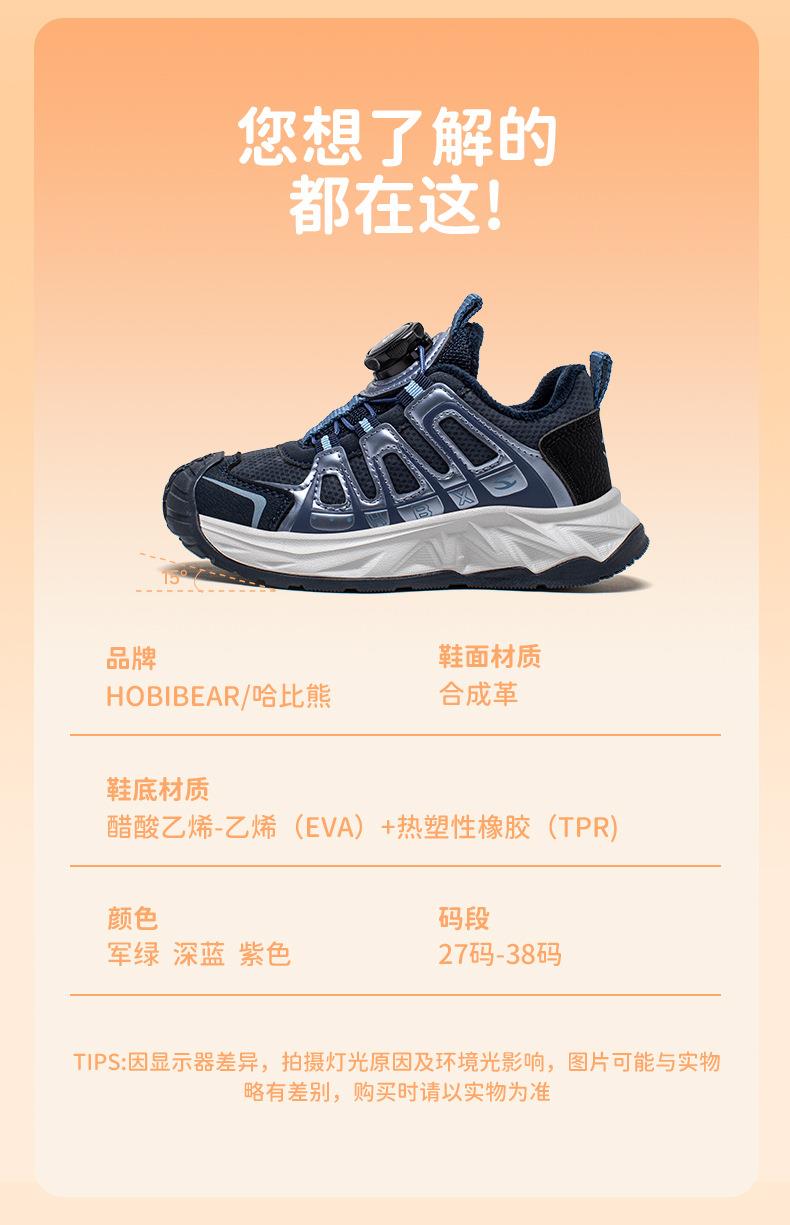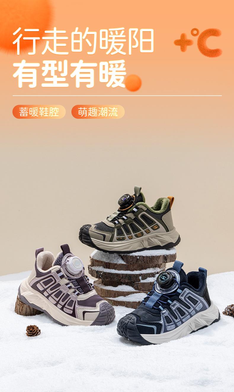 哈比熊加绒儿童运动鞋冬季男女童纽扣鞋保暖中大童休闲鞋