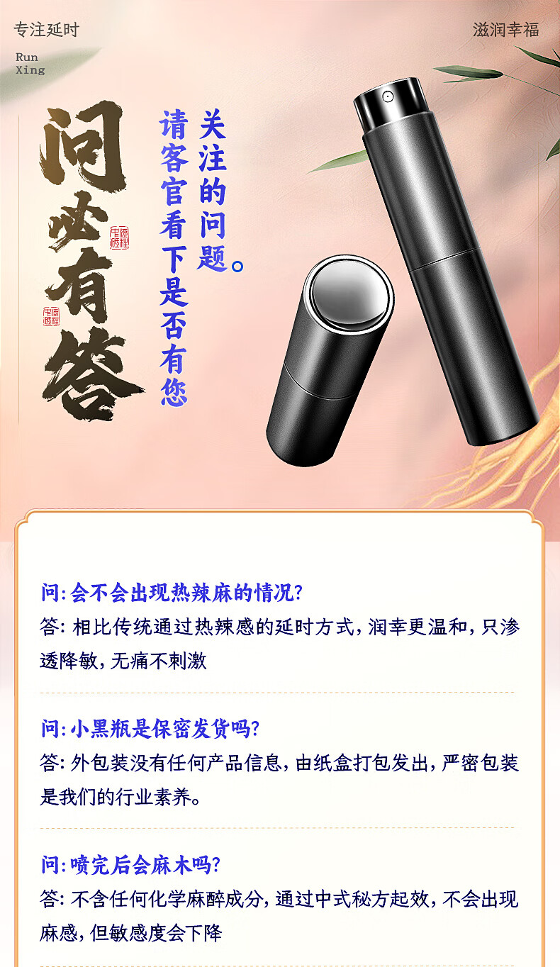 润幸延时喷雾 男用延时外用延迟喷剂 印度神油 小黑瓶 成人情趣性用品 2024年初生产