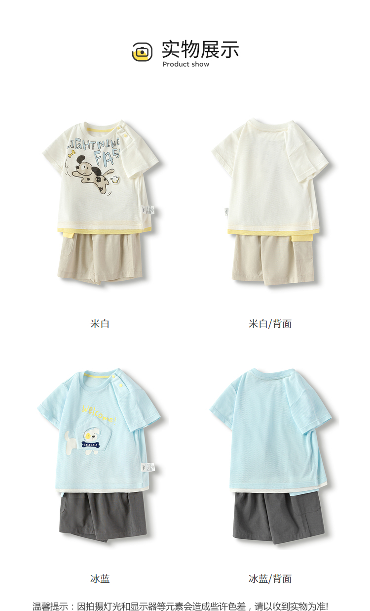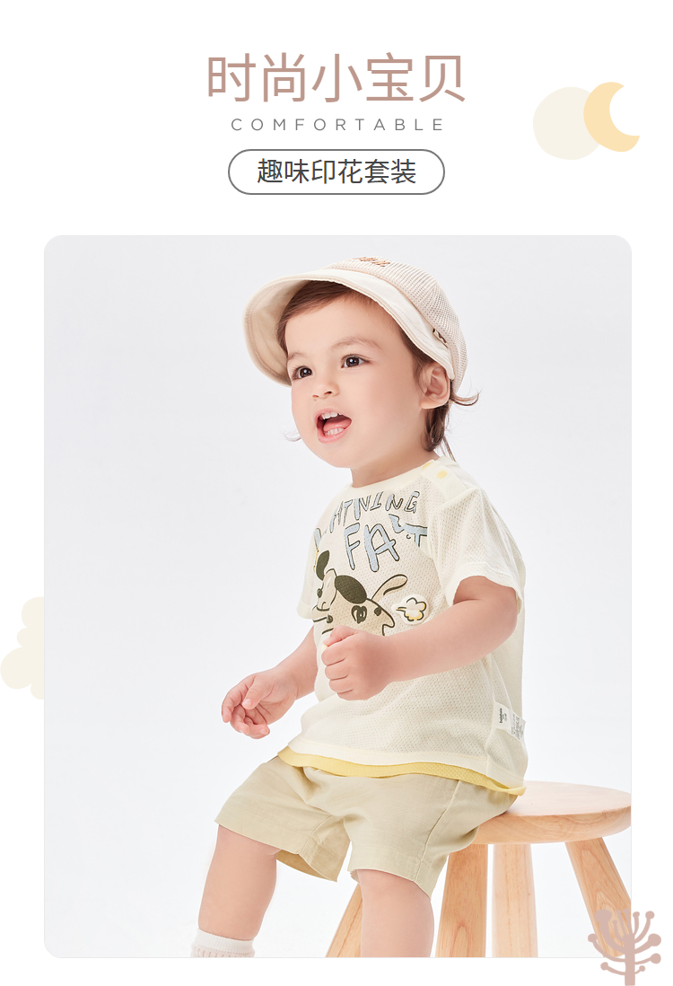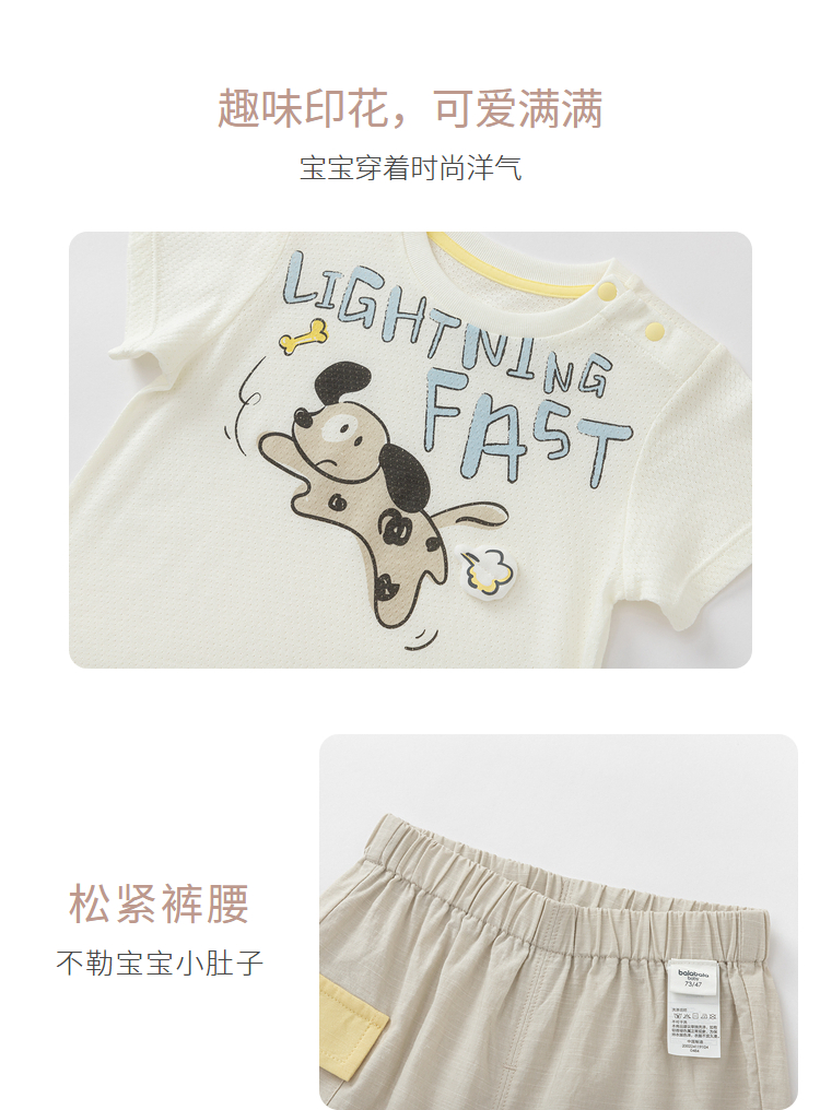 巴拉巴拉宝宝短袖套装夏装婴儿男童衣服两件套舒适透气趣味印花萌