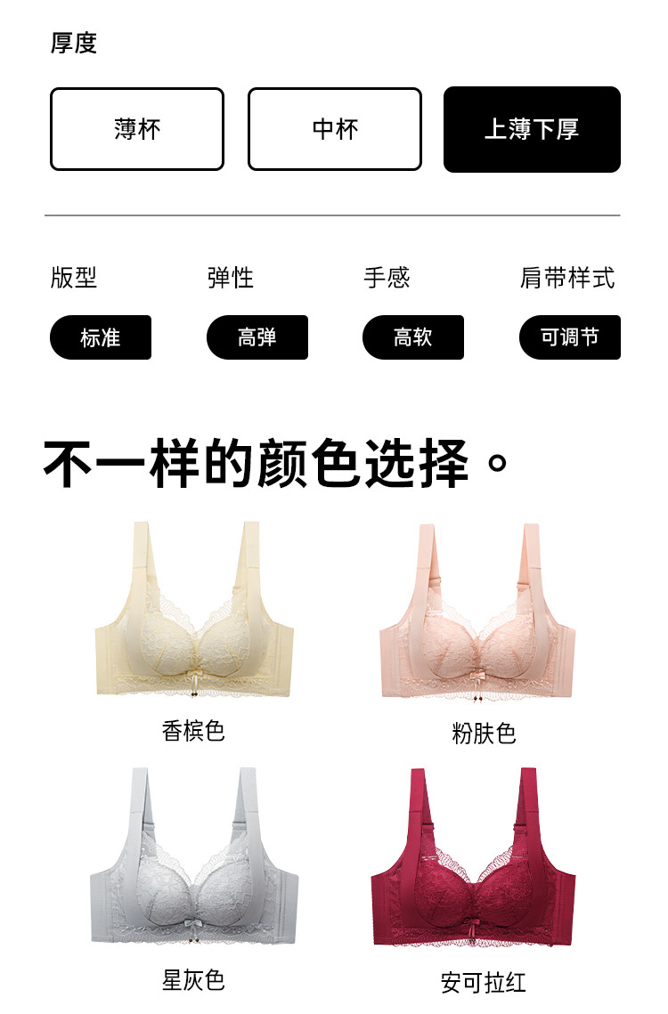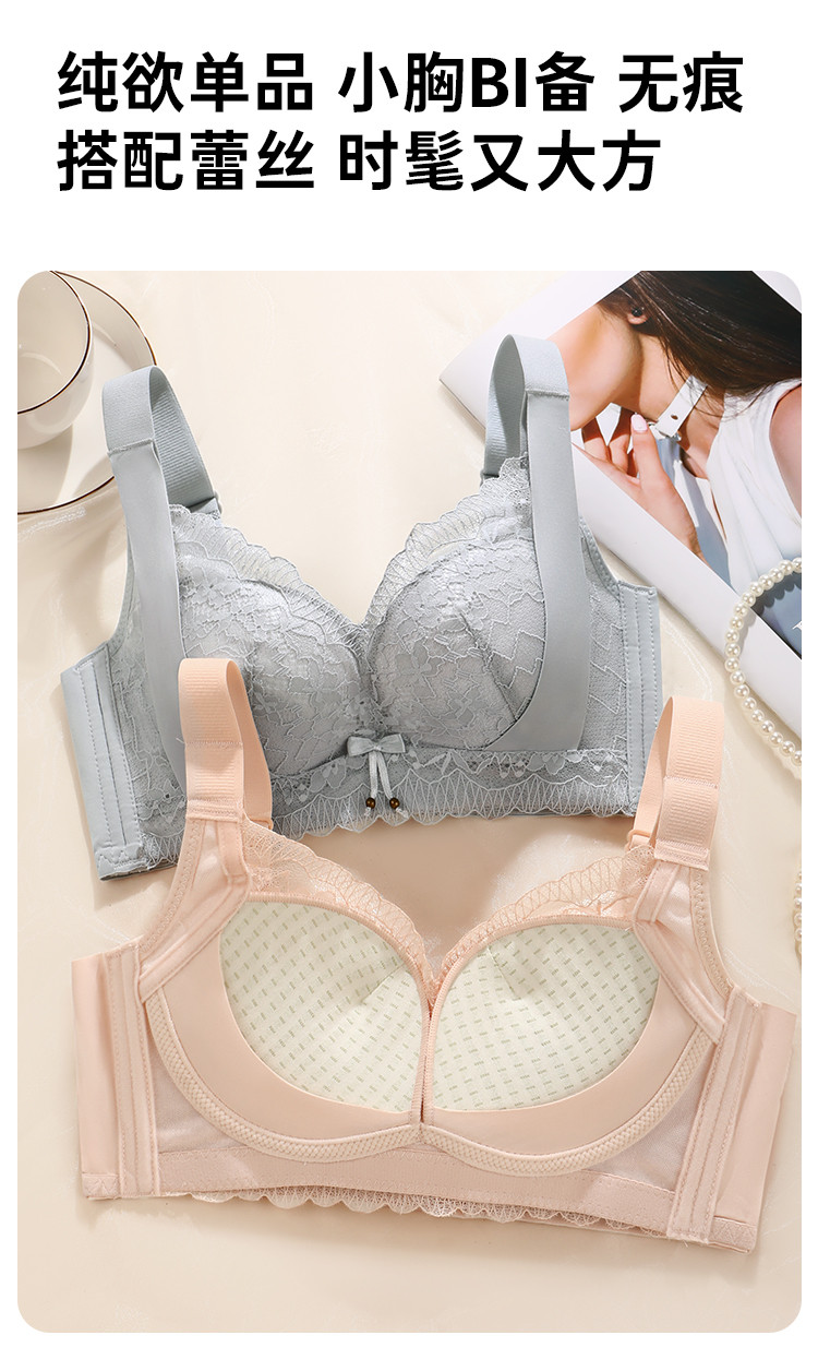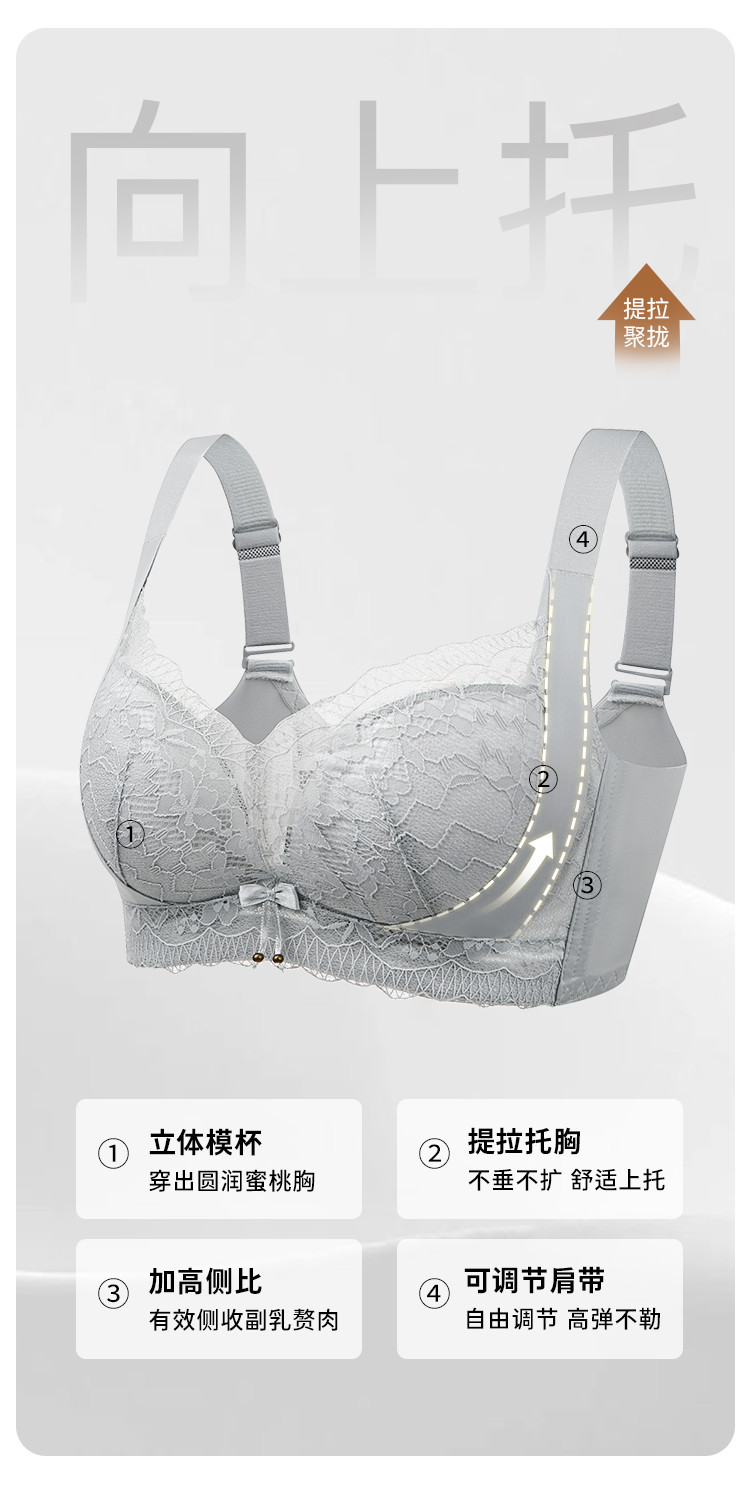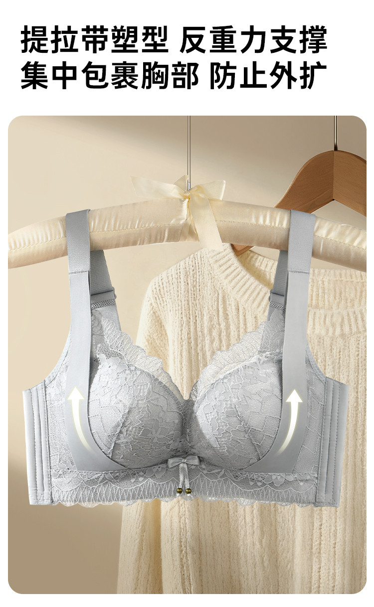 时秋晴雨 文胸(VIP)【小胸聚拢显大】时尚蕾丝侧收防外扩提拉防垂调整型女士文胸