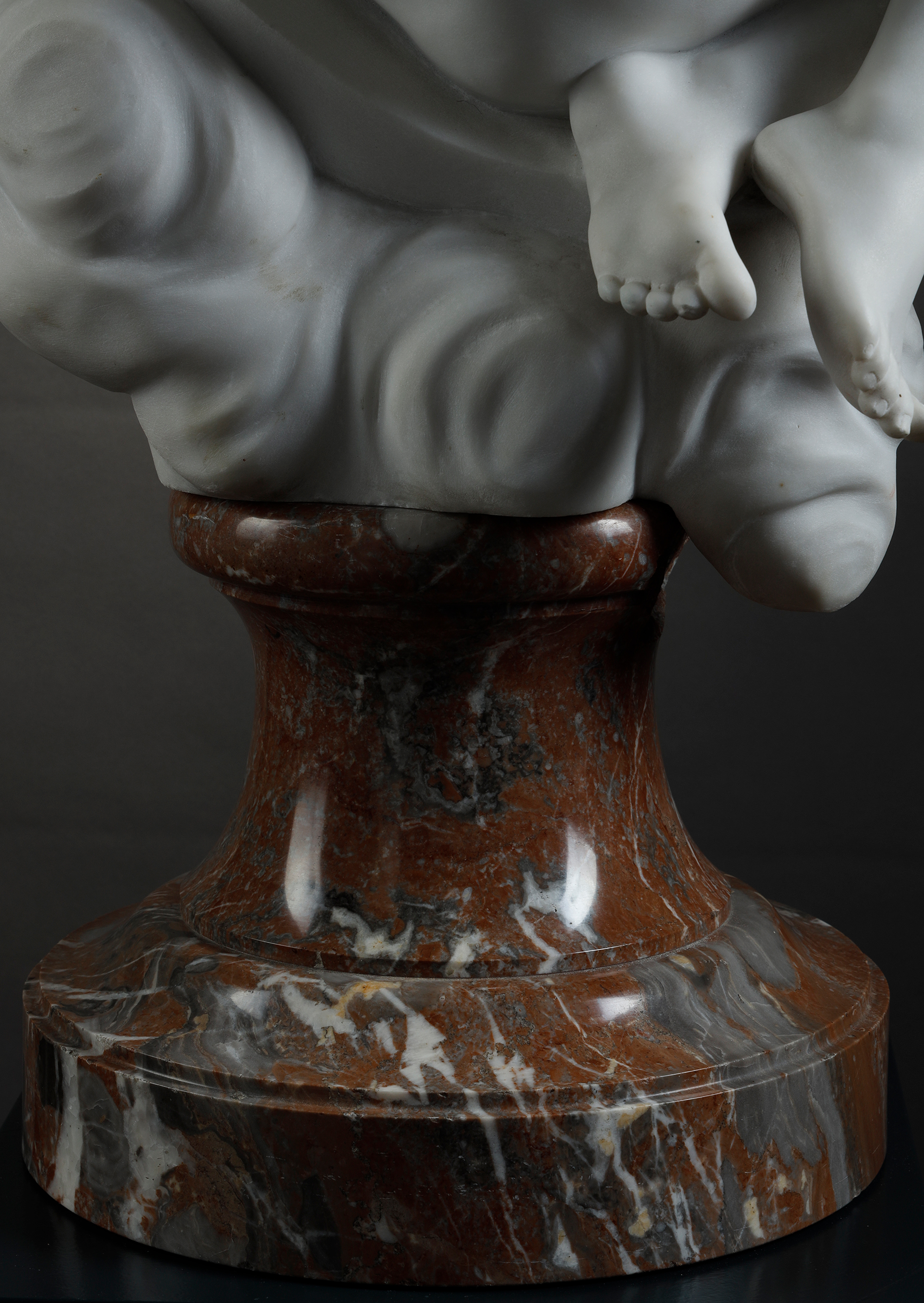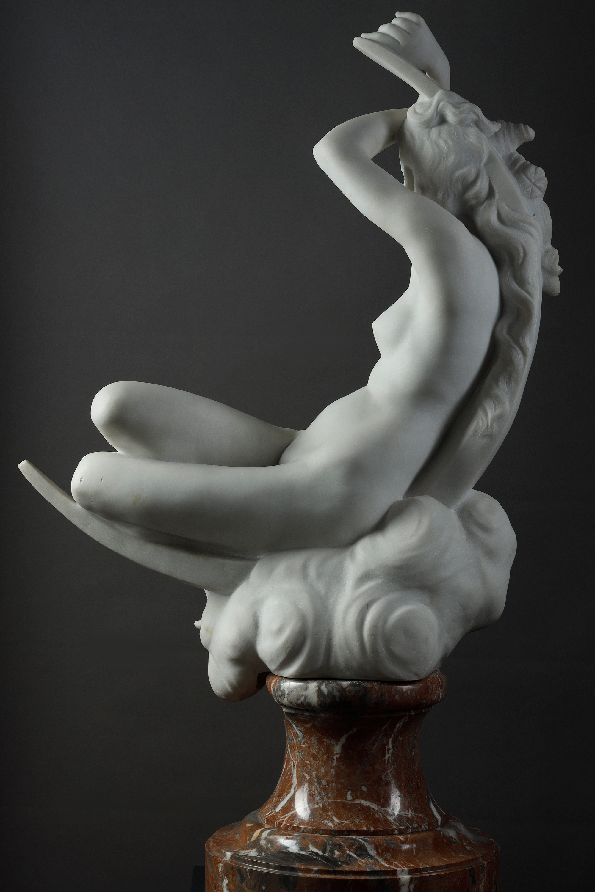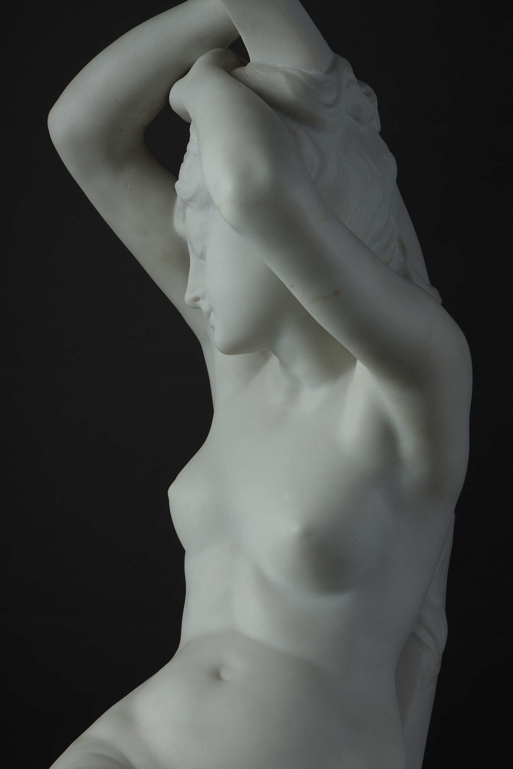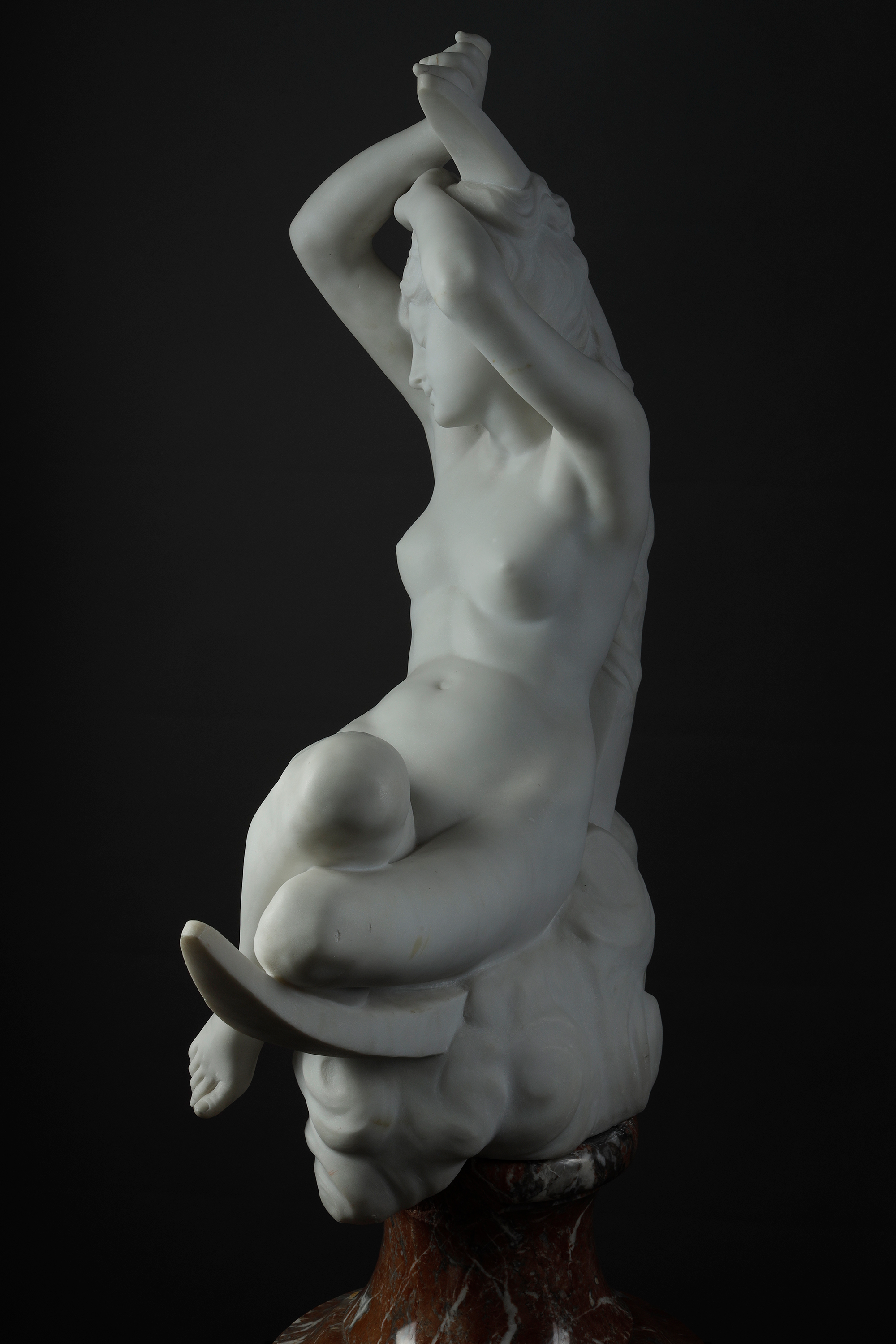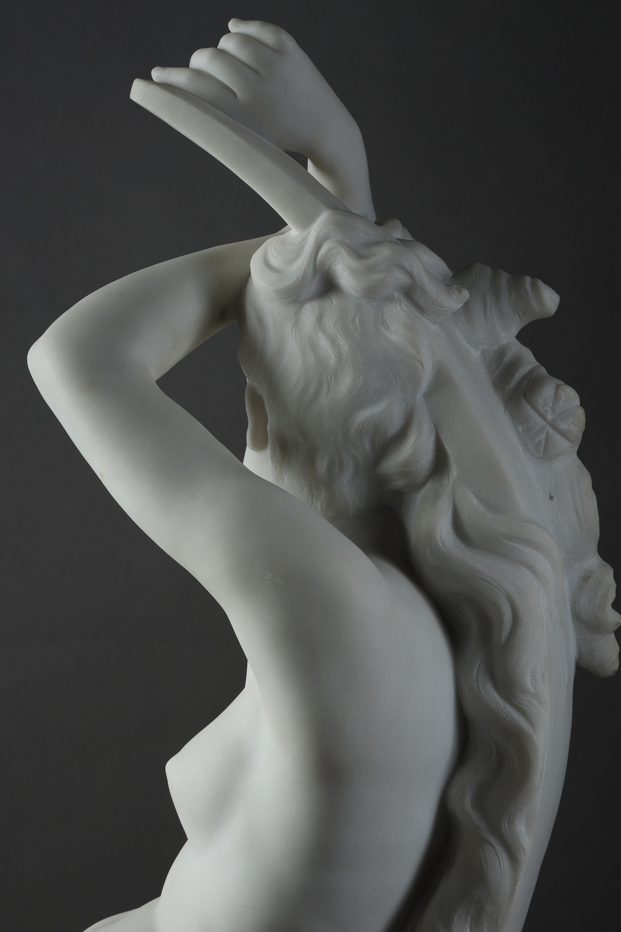 19世纪法国雕塑家Séraphin Denécheau签名创作出品大理石雕塑作品《狄安娜斜倚新月之上》