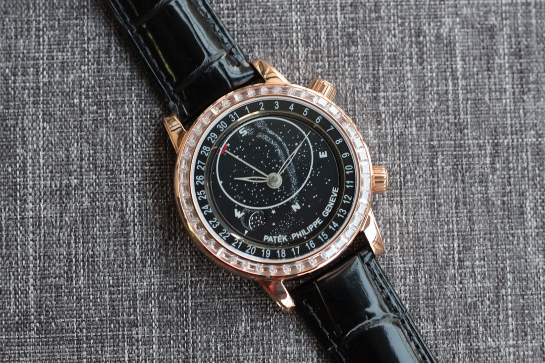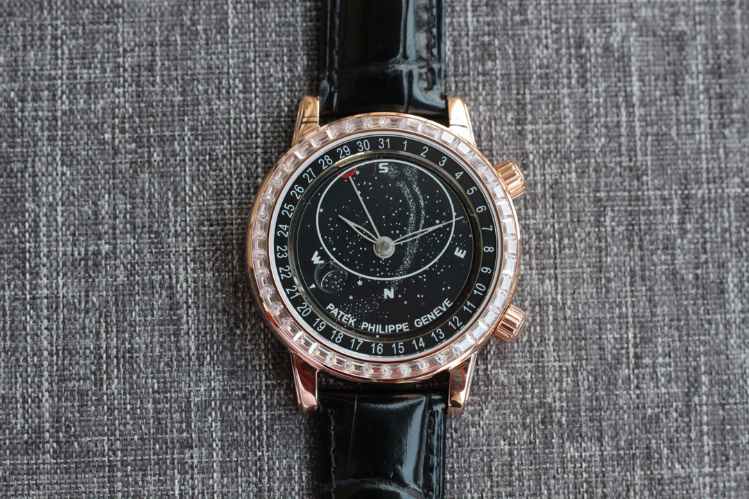 YL百达翡丽 超级复杂功能计时系列 星空6104天月款日内瓦苍穹系列,你可想象把星空佩戴在腕上吗?这款星空腕表独具特别星象功能