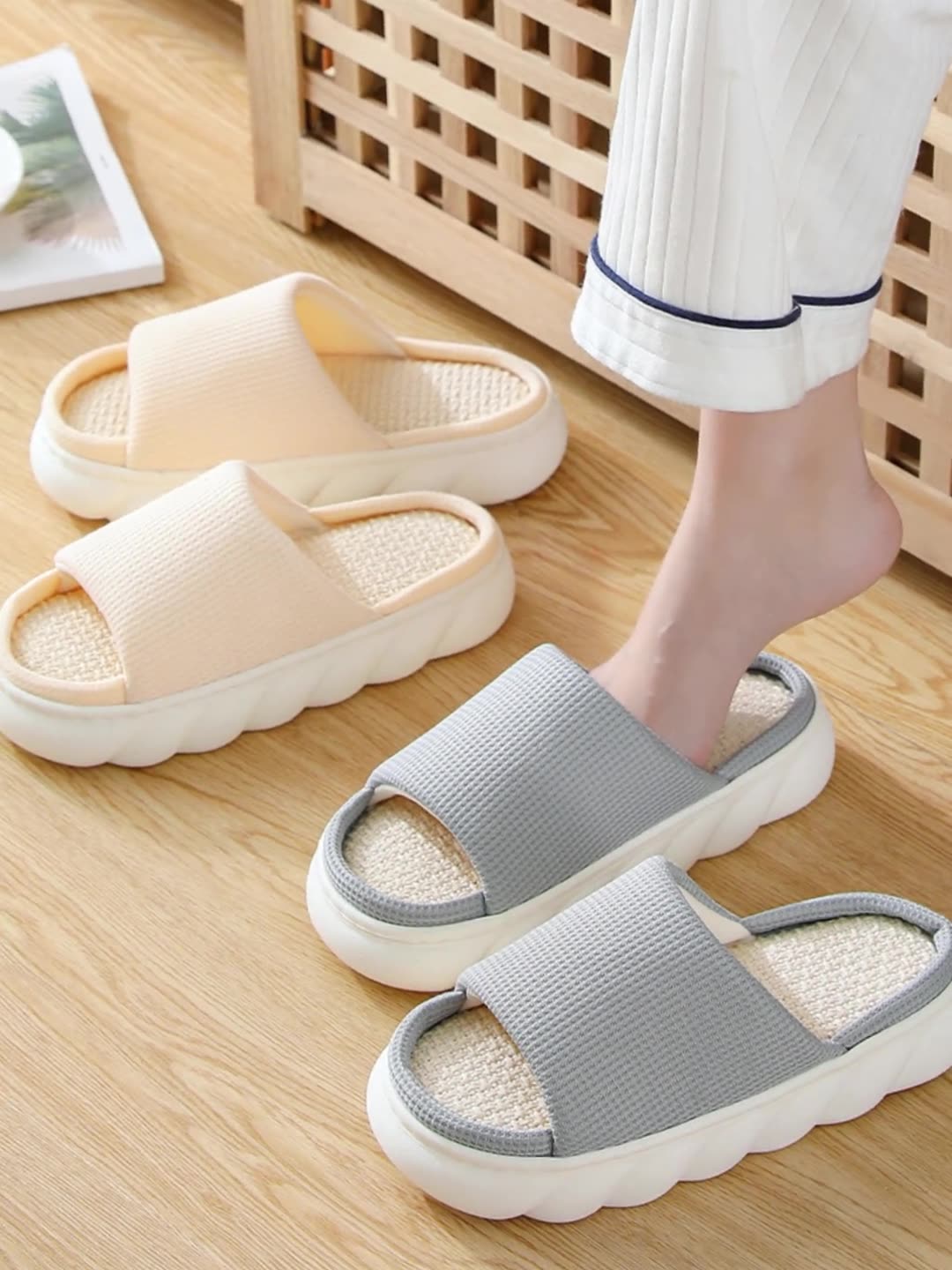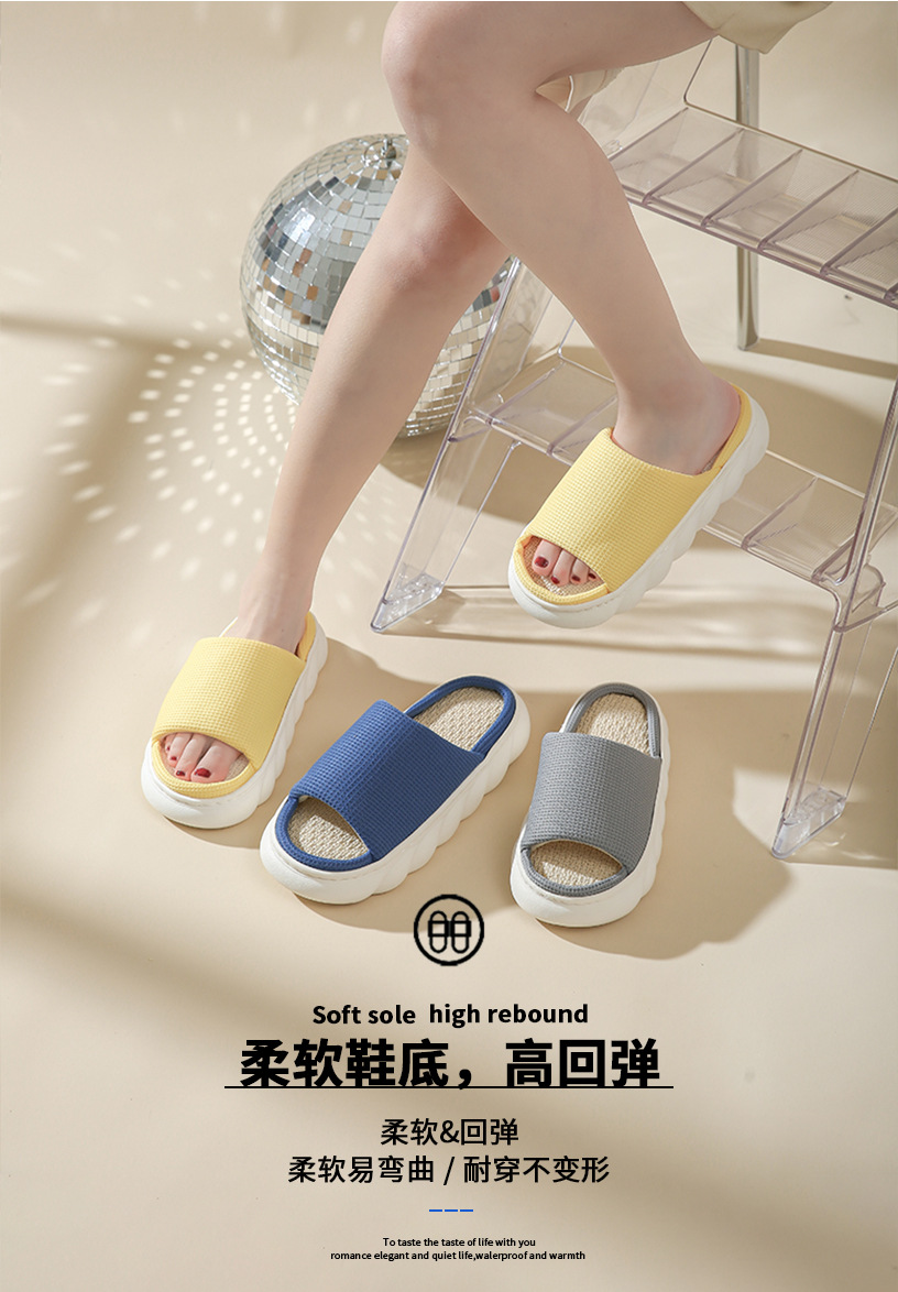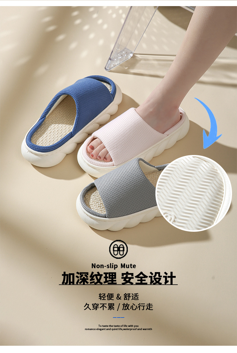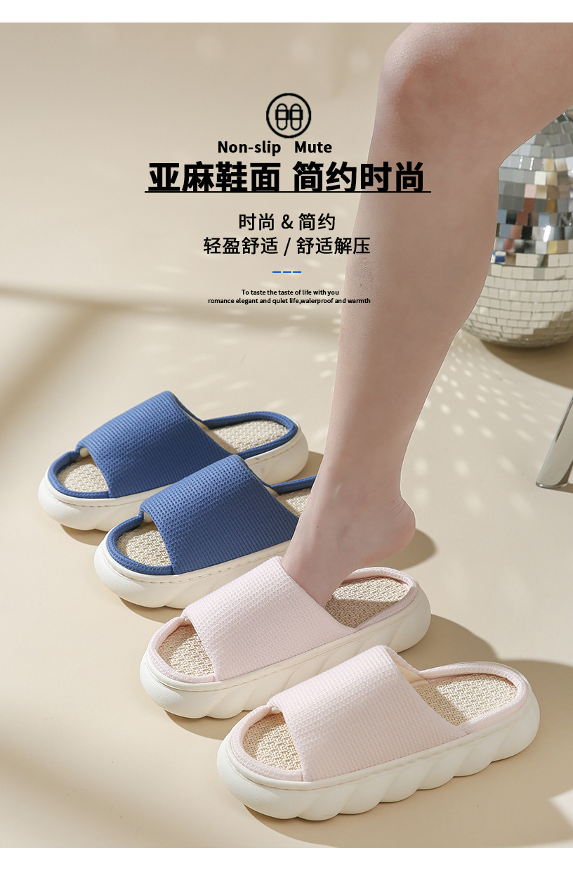 厚底亚麻拖鞋 家居春秋亚麻拖鞋室内家用四季通用情侣防滑防臭男女