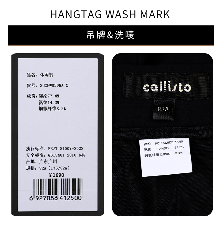 callisto灰色绵羊毛混纺西裤 SSBWP001C