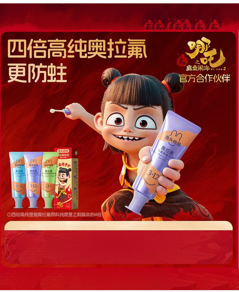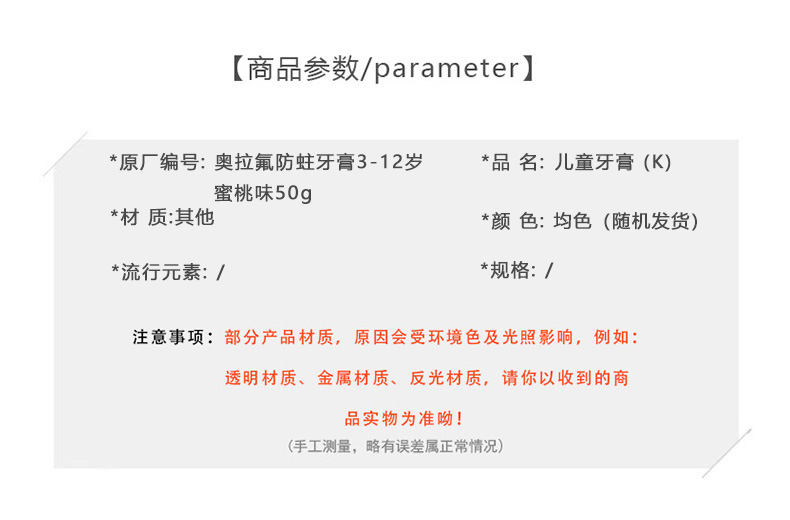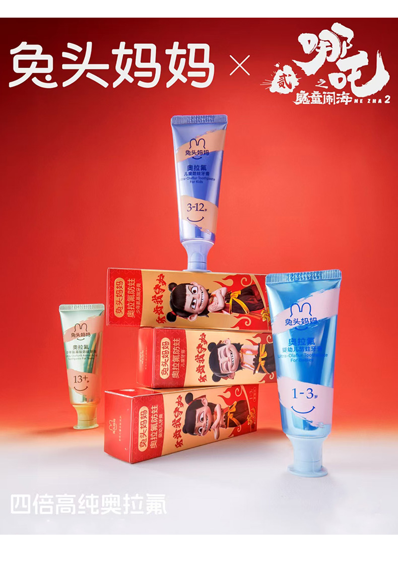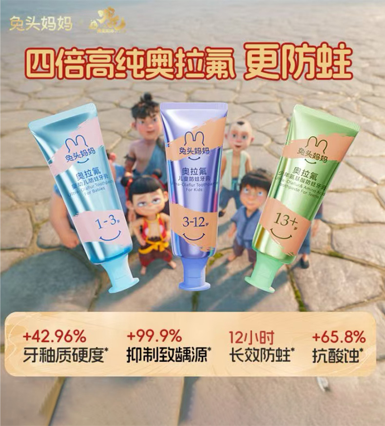 兔头妈妈奥拉氟防蛀牙膏3-12岁蜜桃味50g儿童牙膏161919051