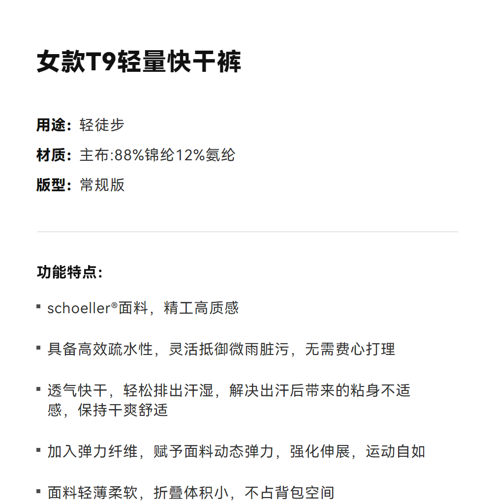 KAILAS凯乐石 女款T9轻量快干裤 KG2515401【Z】