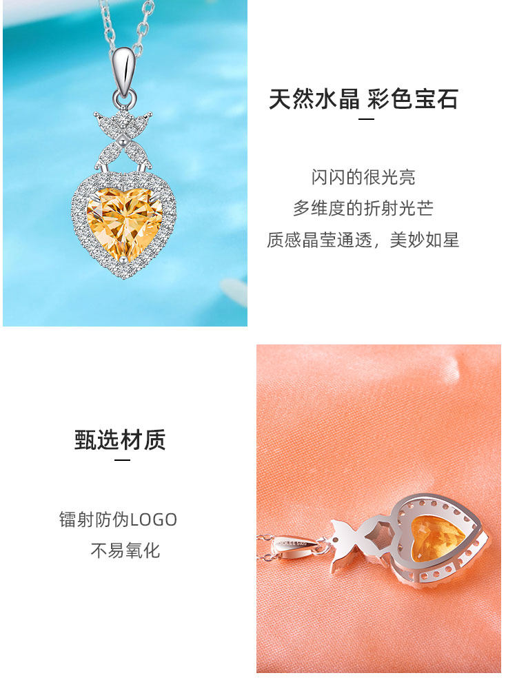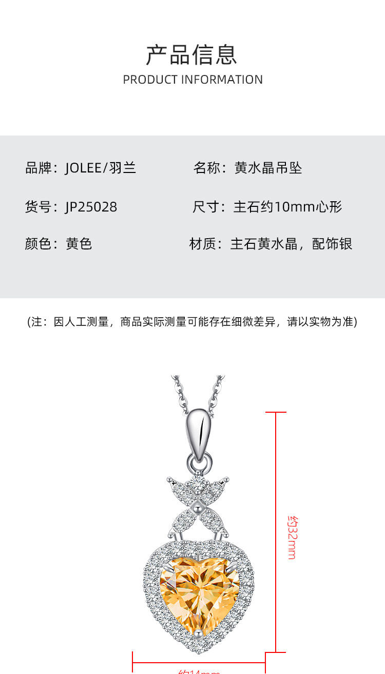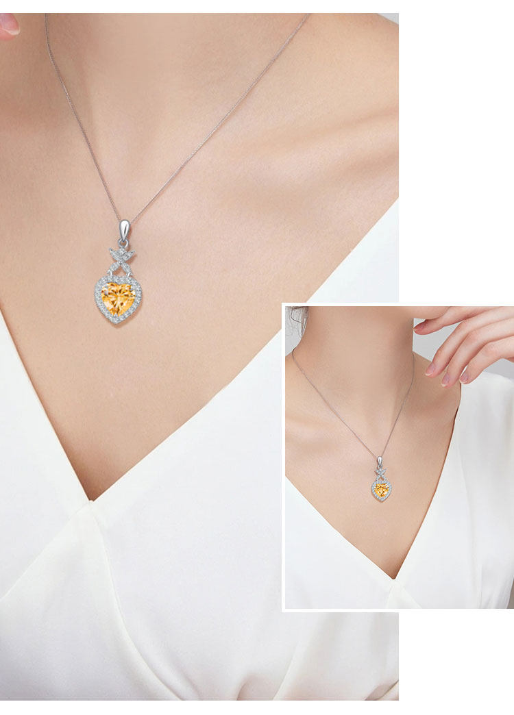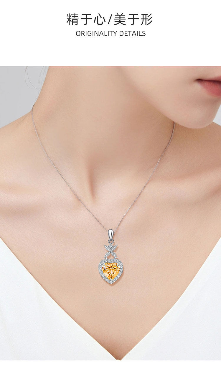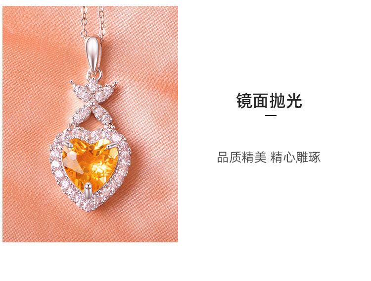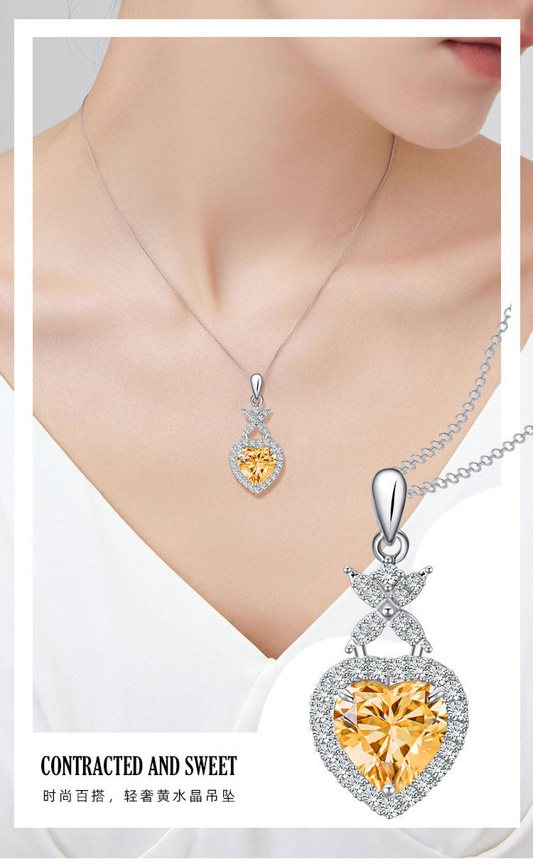 【黄水晶项链/耳钉】S925银轻奢时尚爱心吊坠饰品送女生日节日礼物JP25028/JE25028-水晶CC