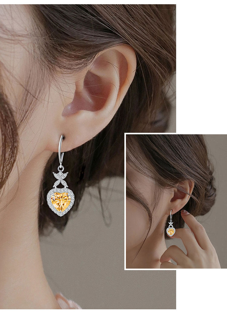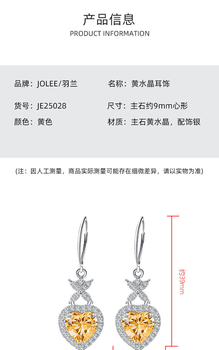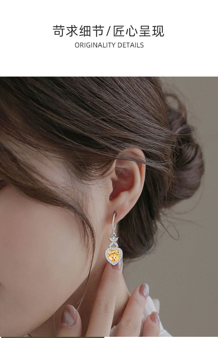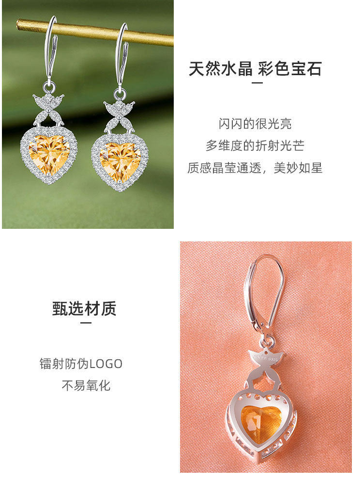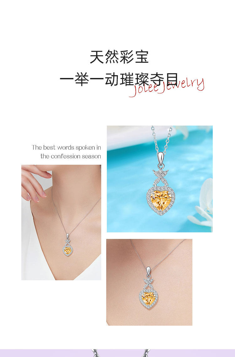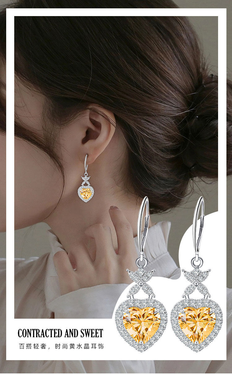 【黄水晶项链/耳钉】S925银轻奢时尚爱心吊坠饰品送女生日节日礼物JP25028/JE25028-水晶CC