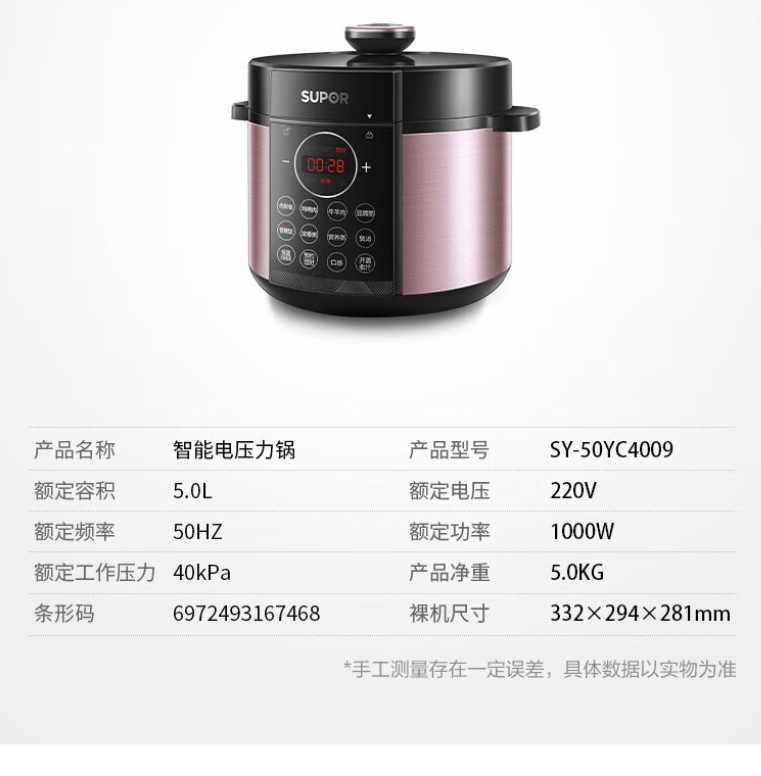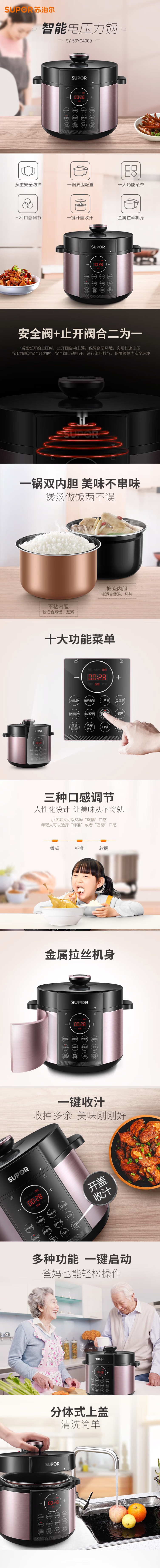 苏泊尔(510729)SY-50YC4009电压力锅家用5L双胆全自动智能