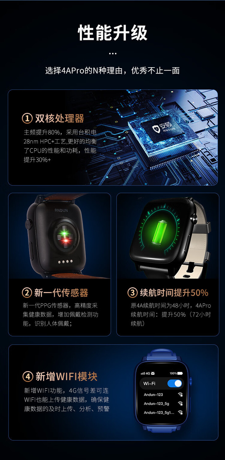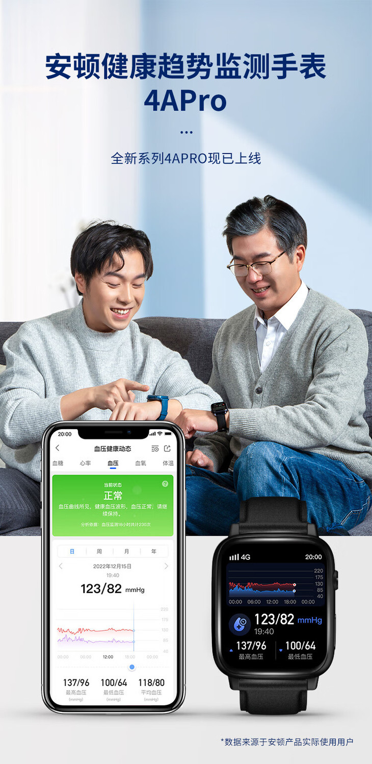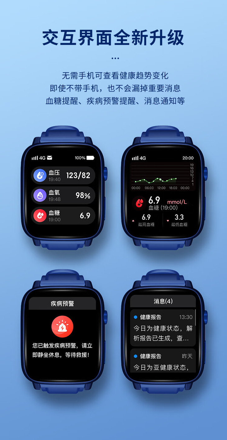 安顿 健康预警手表 4APro尊享款 免采血 无痛血糖 预警 无创监测心率 血氧 智能老人睡眠监测智能手表